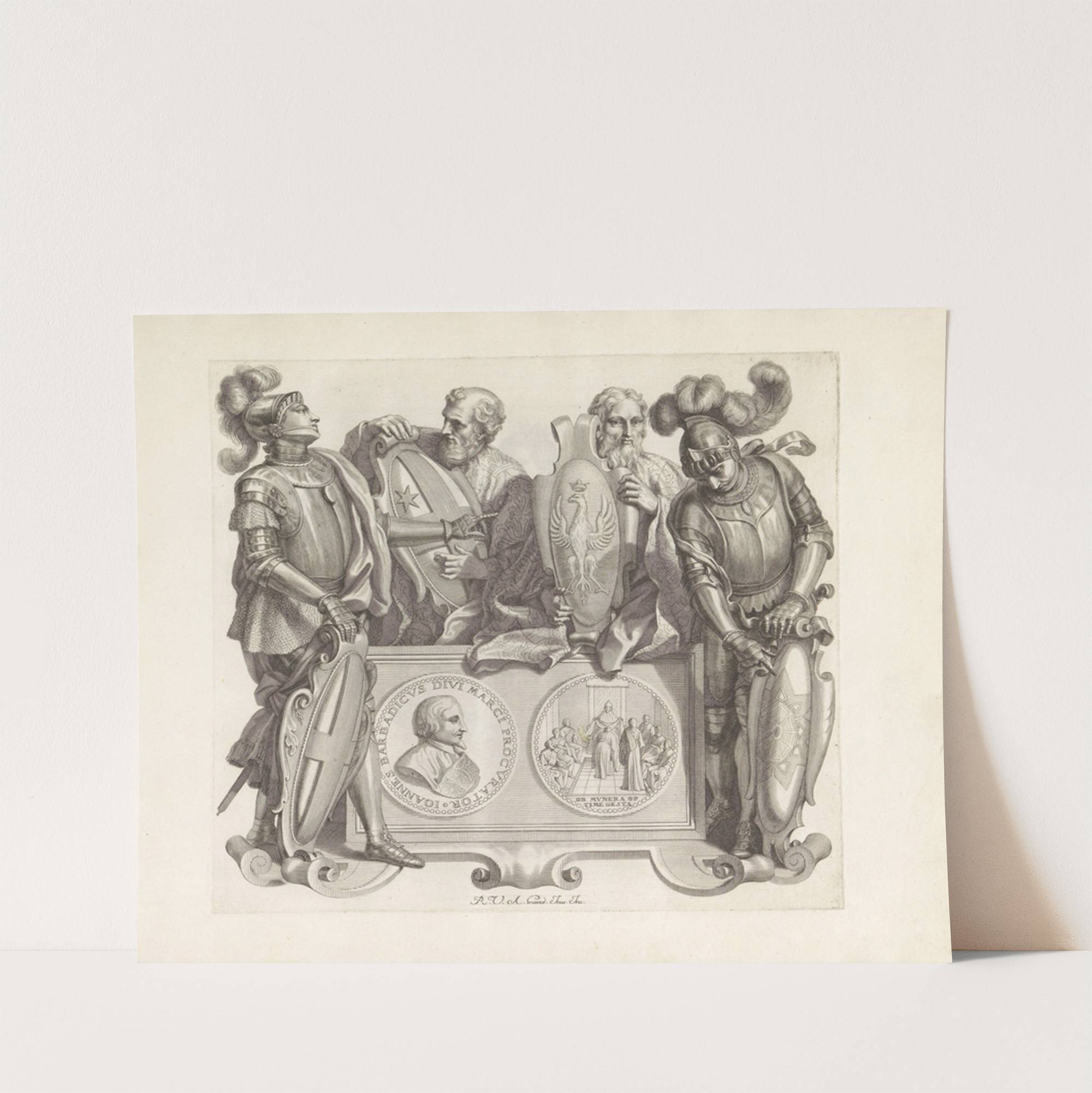 Portret van Giovanni Barbarigo met vier mannen met wapenschilden (1673-1743) by Robert van Audenaerde - Wall Art Print