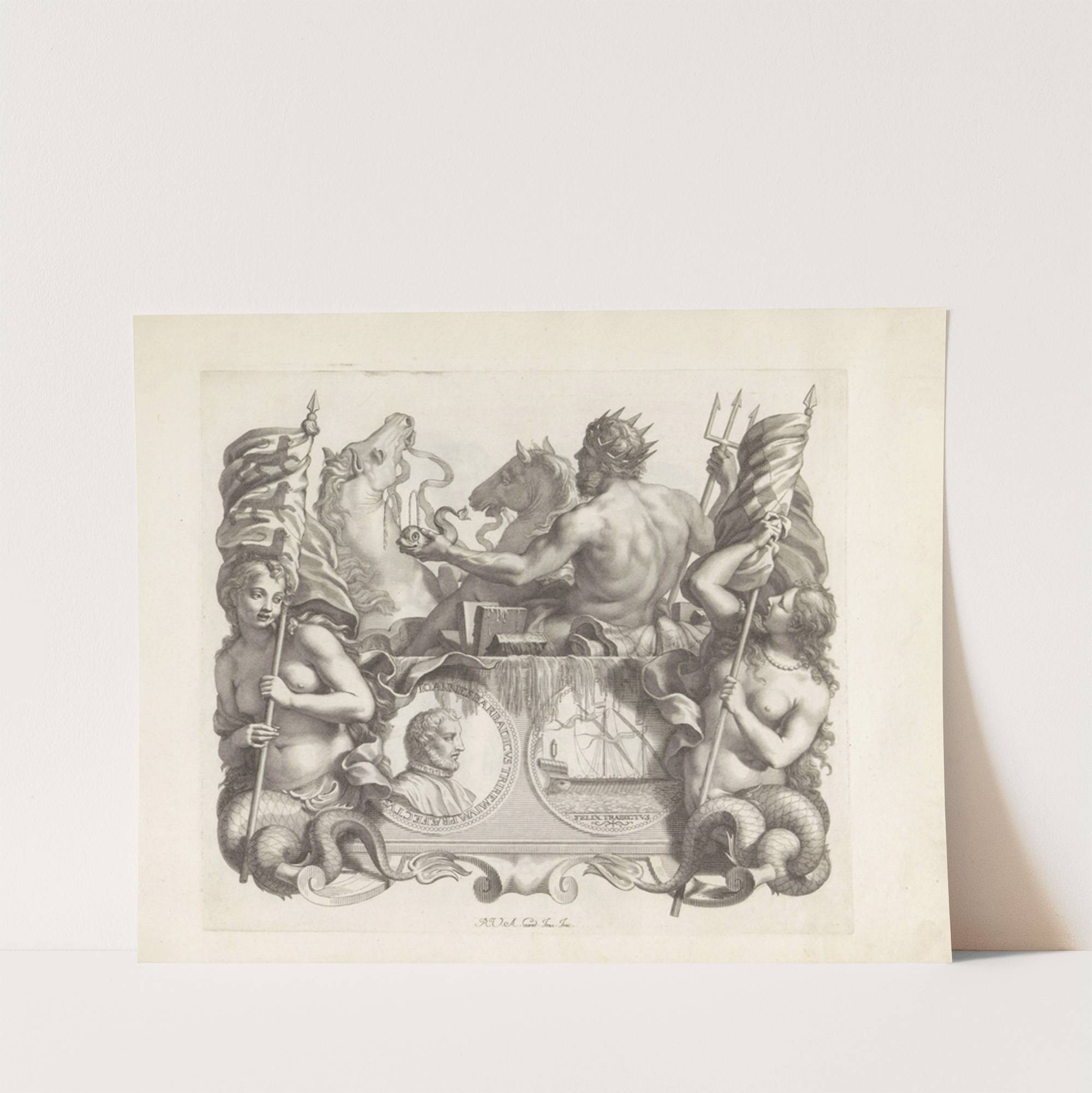Portret van Giovanni Barbarigo, Neptunus en twee zeemeerminnen (1673-1743) by Robert van Audenaerde - Wall Art Print