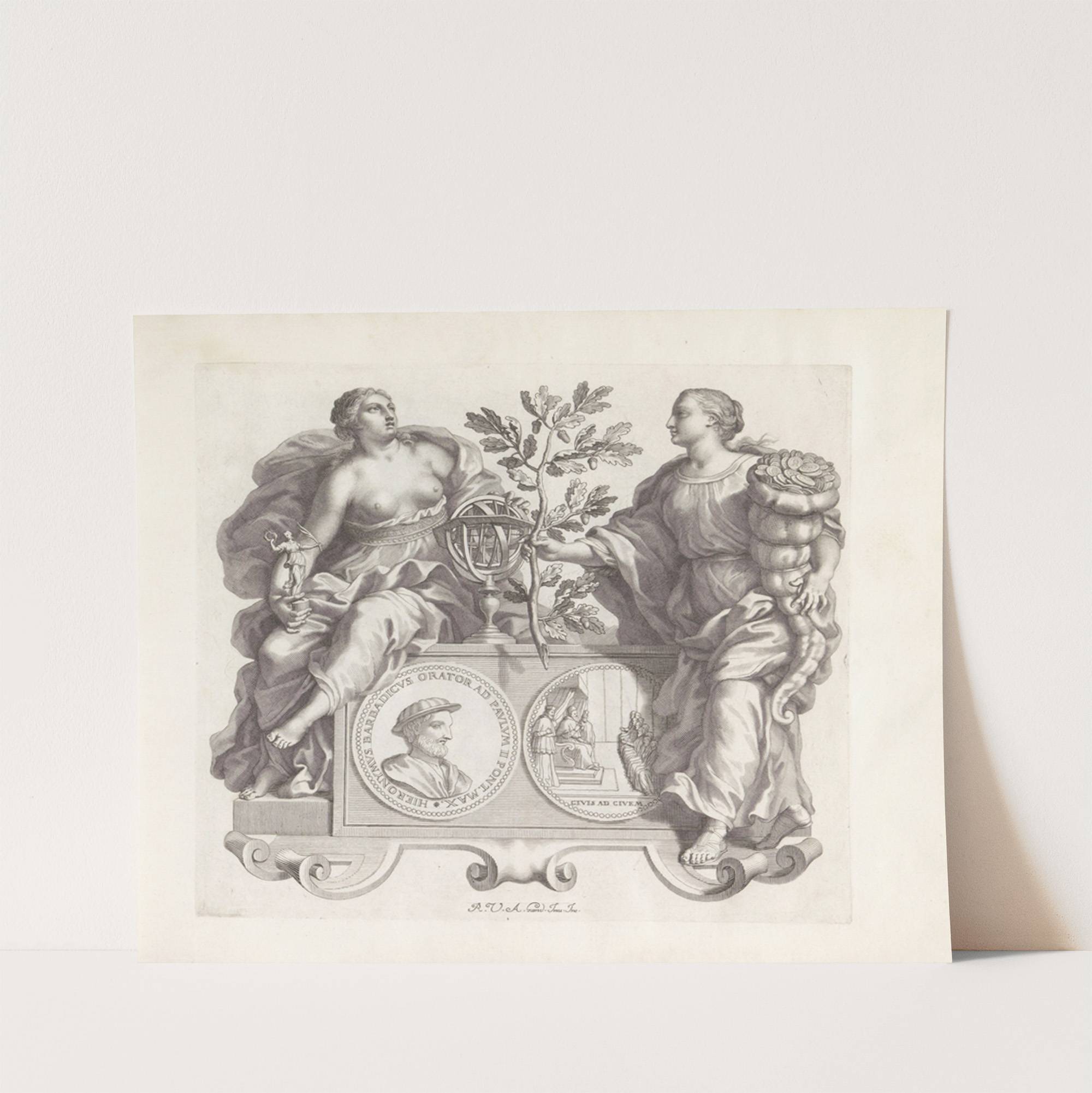 Portret van Girolamus Barbarigo en de personificaties Roem en Welvaart (1673-1743) by Robert van Audenaerde - Wall Art Print