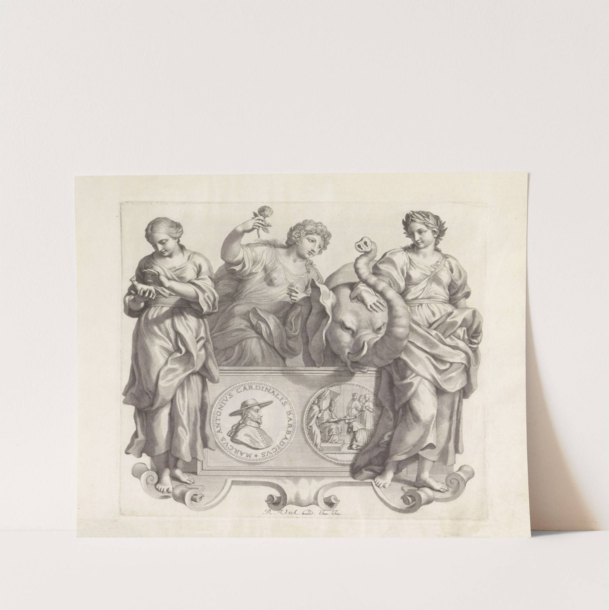 Portret van Marcantonio Barbarigo en de personificaties van Beleefdheid, Vriendelijkheid en Zachtmoedigheid (1673-1743) by Robert van Audenaerde - Wall Art Print
