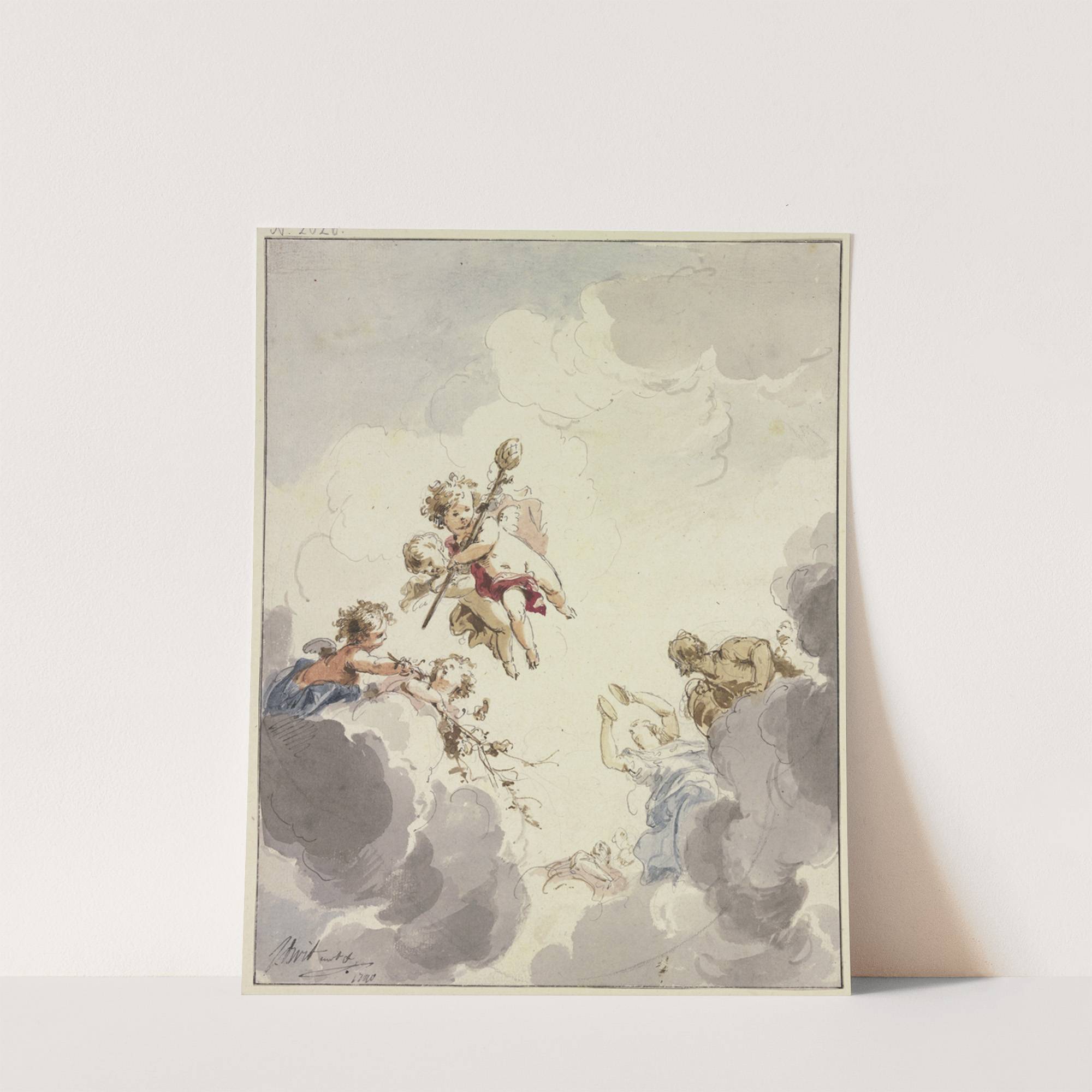 Amoretten mit einem Thyrsusstab und Bacchanten in Wolken by Jacob de Wit - Wall Art Print