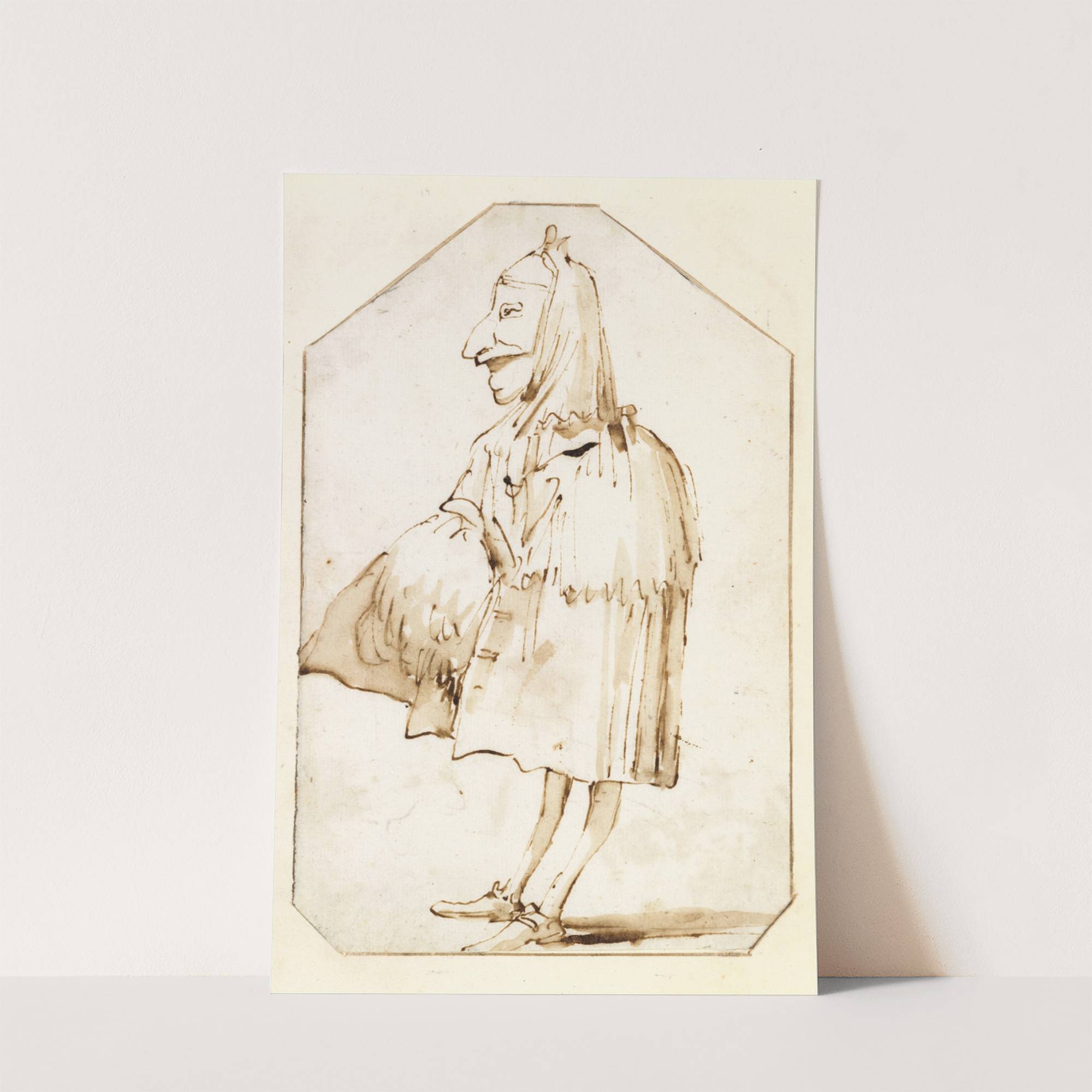 Caricature of a Man in a Mask and a Cloak, Holding a Muff and a Tricorne, Standing in Profile to the Left by Giovanni Battista Tiepolo - Wall Art Print