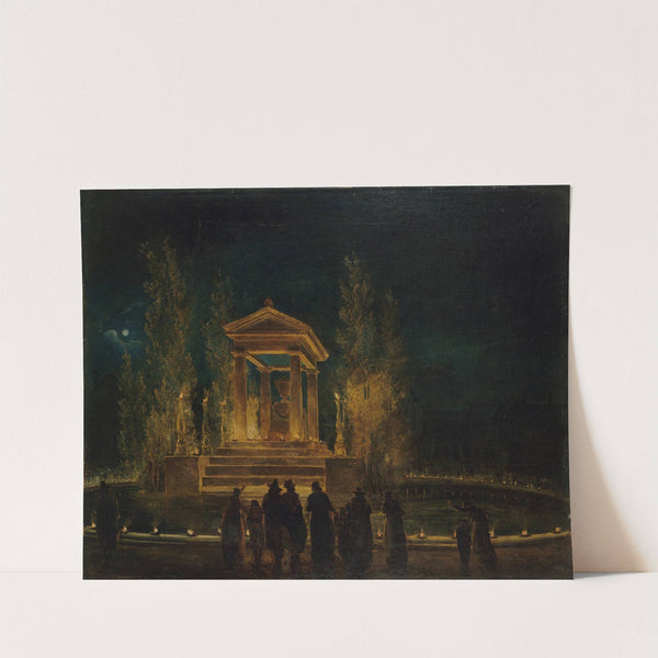 Le Mausolée provisoire de Jean-Jacques Rousseau, sur le bassin des Tuileries, avant la translation de ses cendres au Panthéon. Nuit du 10 au 11 octobre 1794 by Hubert Robert - Wall Art Print