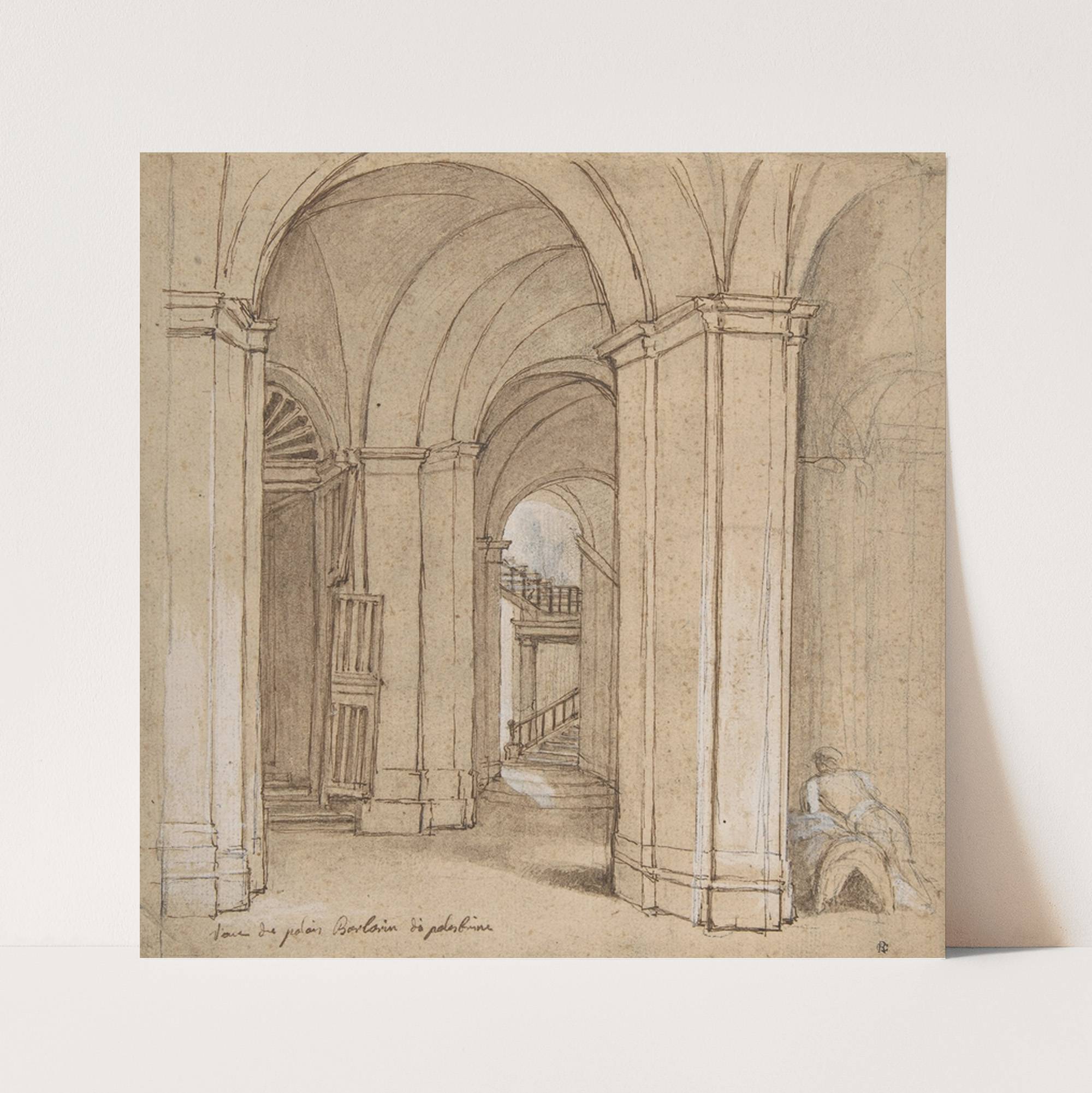 Staircase in the Palazzo Barberini, Palestrina by Charles-Joseph Natoire - Wall Art Print