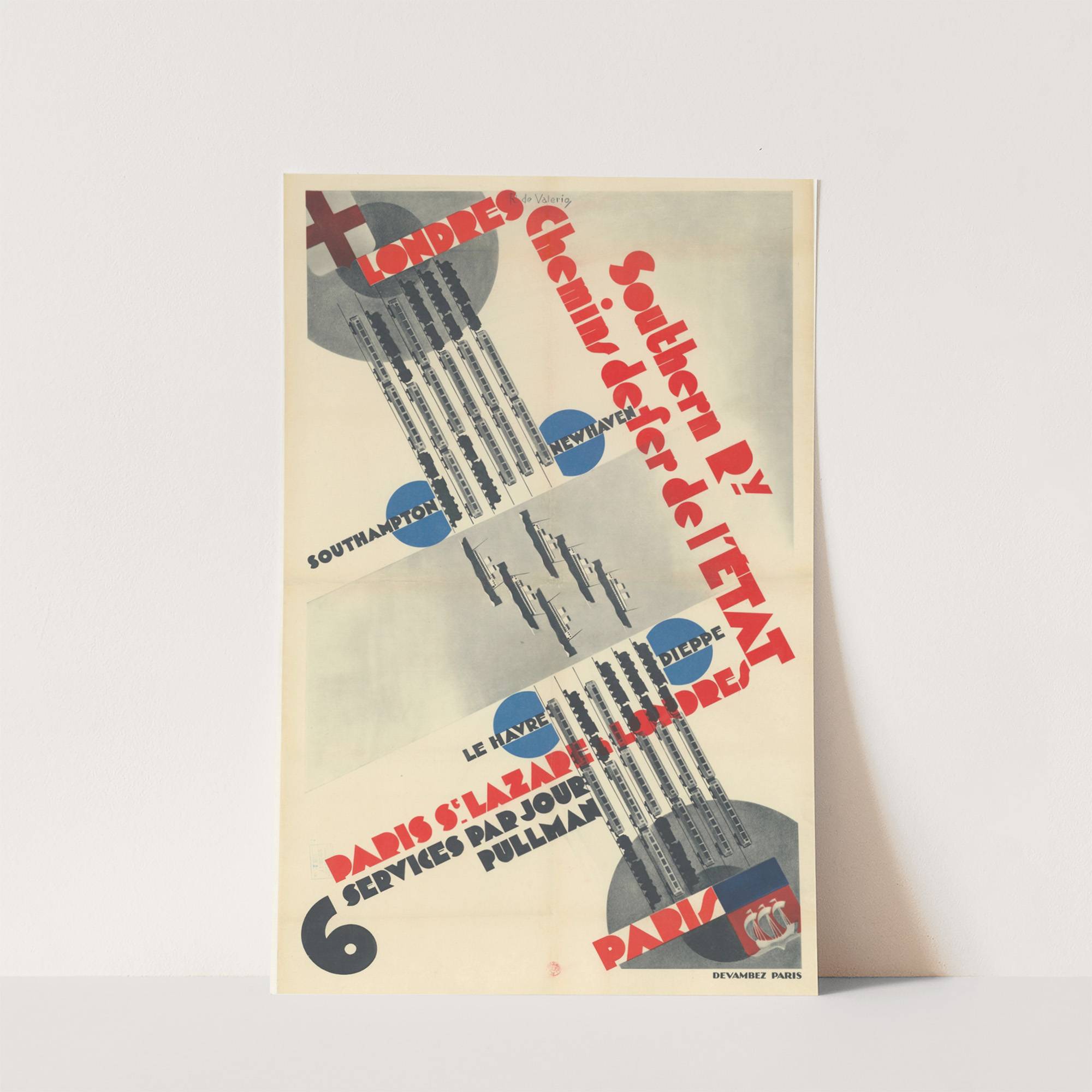 Londres-Paris. Southern Railway. Chemins de fer de l’Etat, 6 six services par jour. Paris St Lazare-Londres (1930) by Roger de Valerio - Wall Art Print
