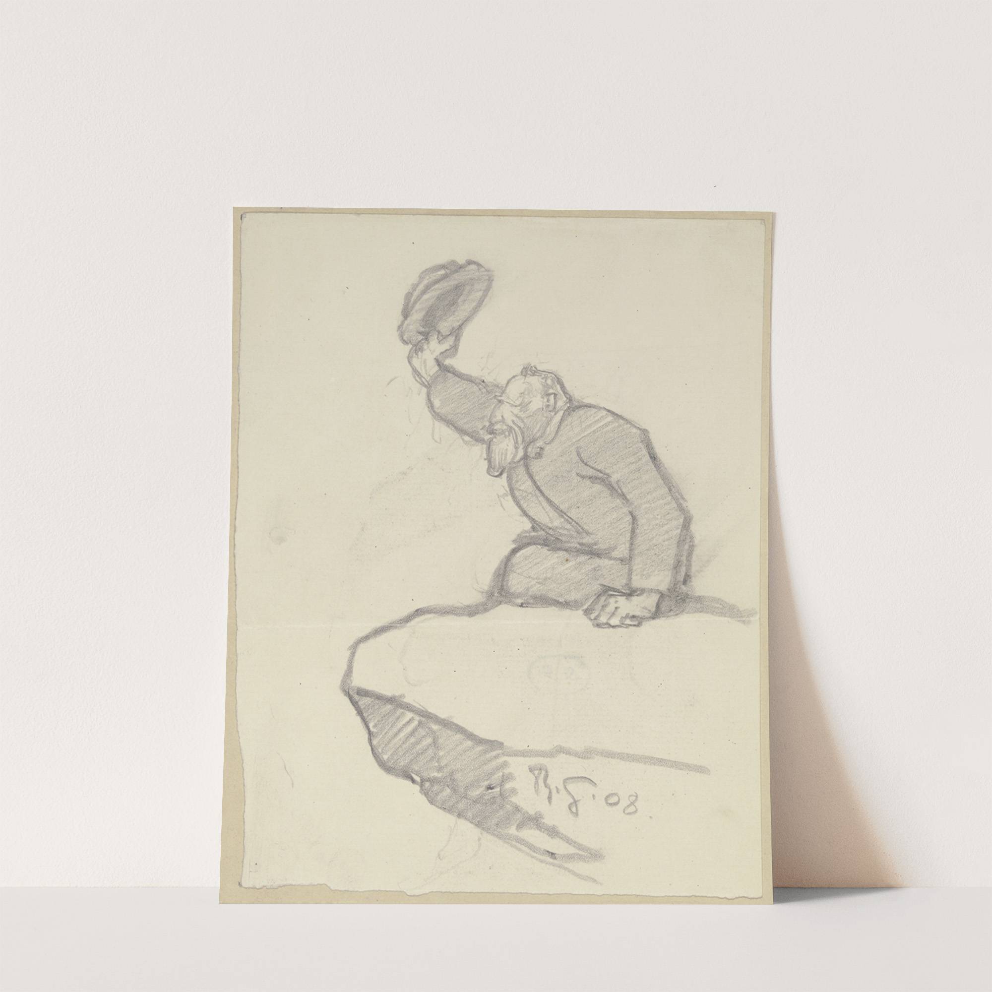 Alter Mann, von einem Felsvorsprung seinen Hut zum Gruße hebend by Rudolf Gudden - Wall Art Print