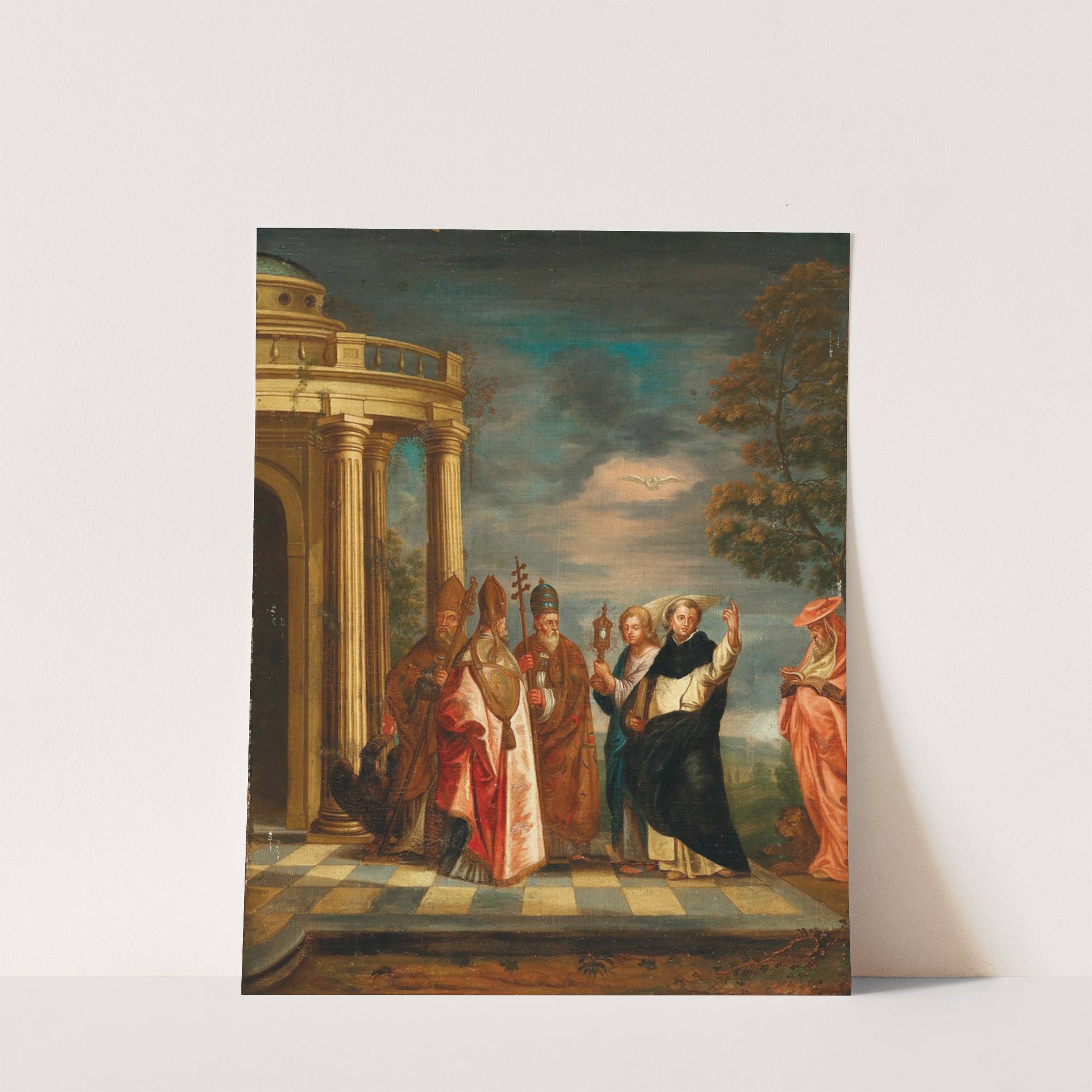 Saint Thomas Aquinas With Saints Ambrose, Augustine, Pope Gregory The Great And Jerome Contemplating The Blessed Sacrament by Erasmus De Bie - Wall Art Print