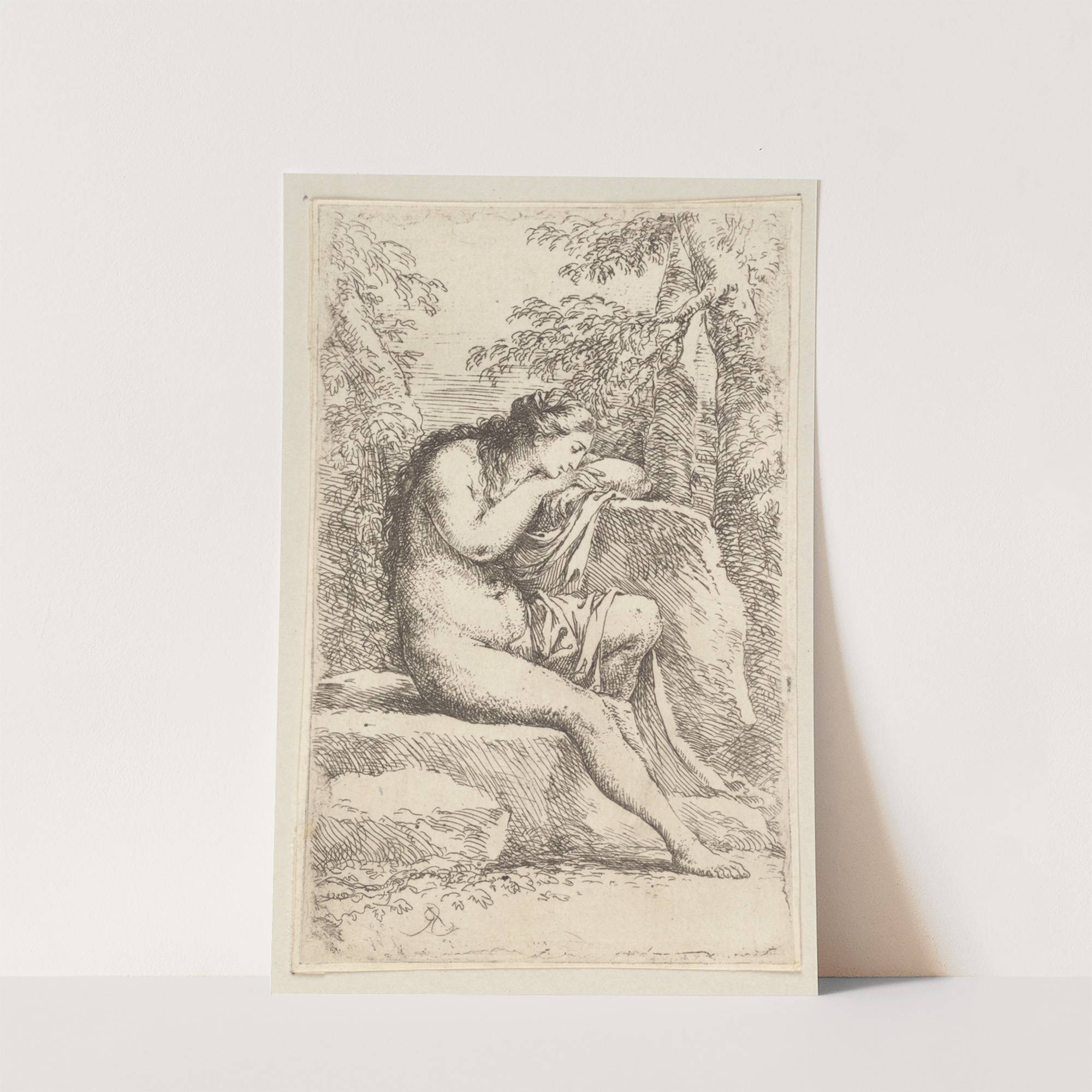 Nude in Contemplation, Seated on a Rocky Ledge by Salvator Rosa - Wall Art Print