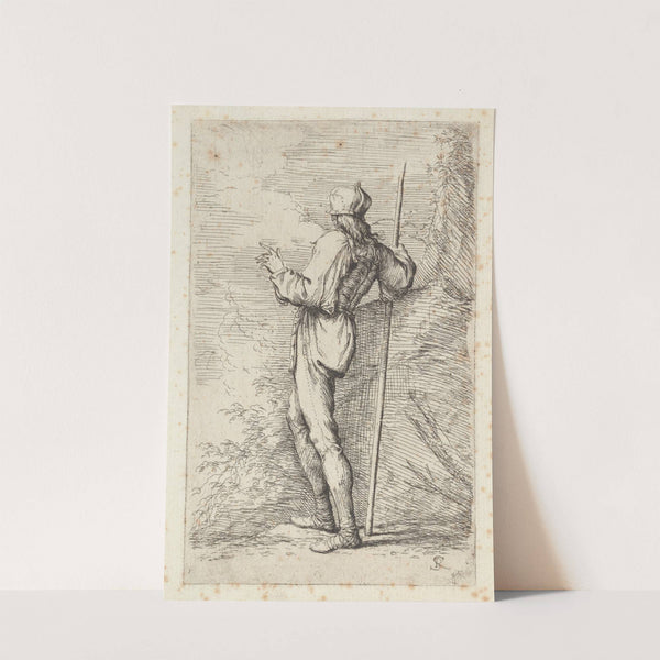 Soldier, Standing, Holding a Long Cane before a Rocky Wall by Salvator Rosa - Wall Art Print
