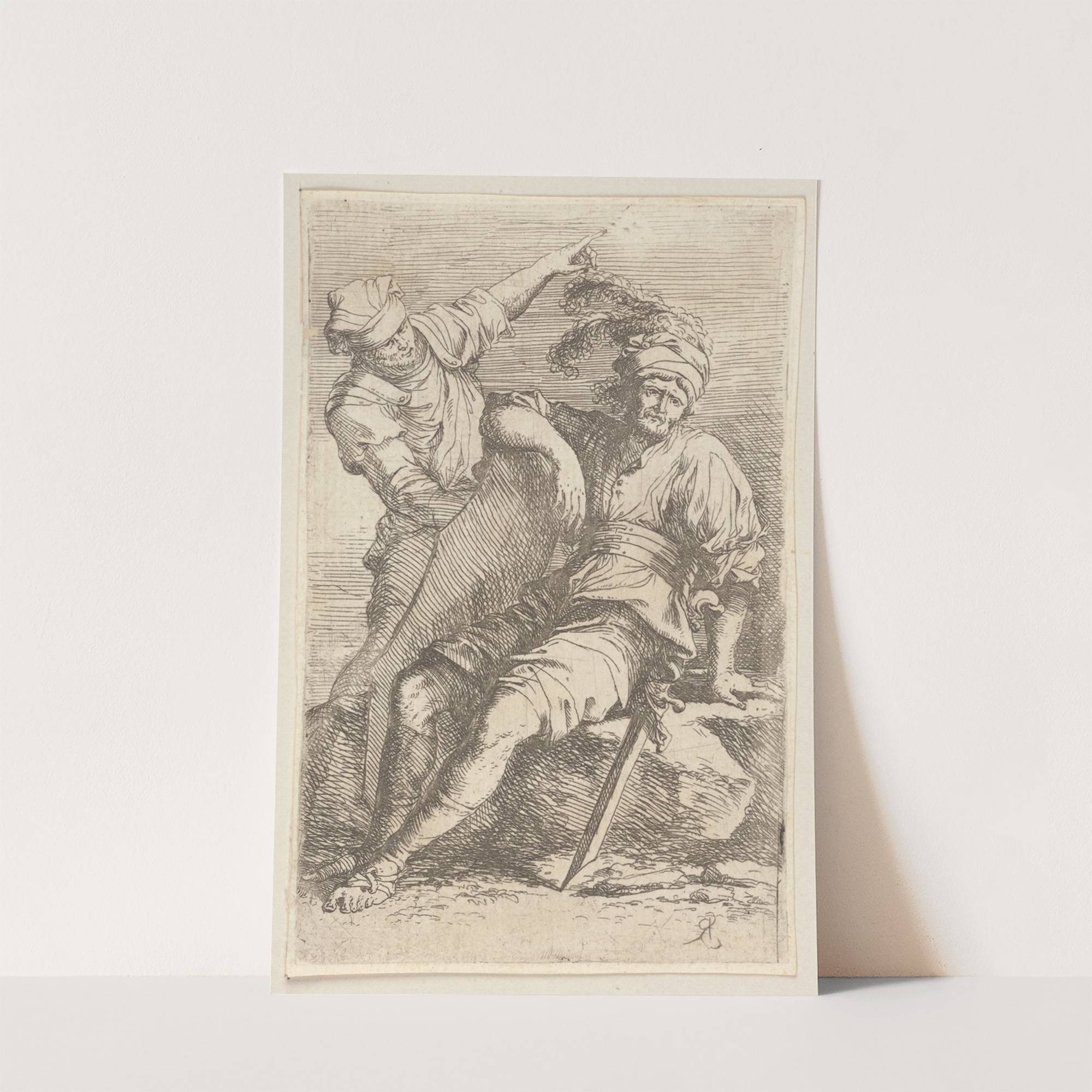 Two Soldiers, One seated with Sword and Shield by Salvator Rosa - Wall Art Print