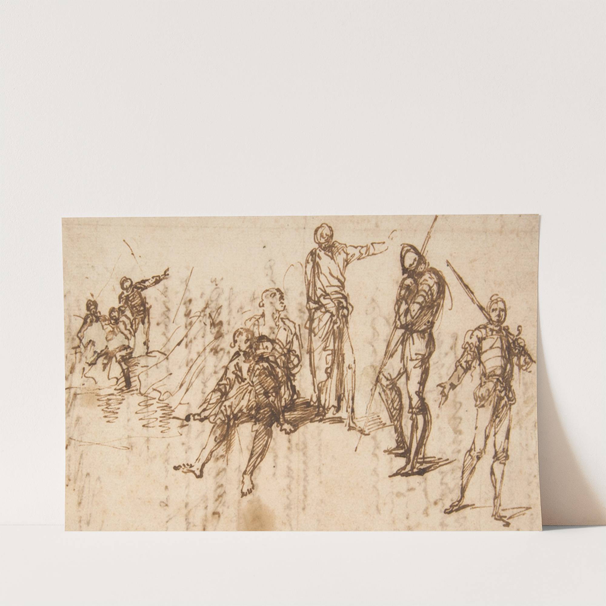 Two Standing Soldiers and Six other Figures by Salvator Rosa - Wall Art Print
