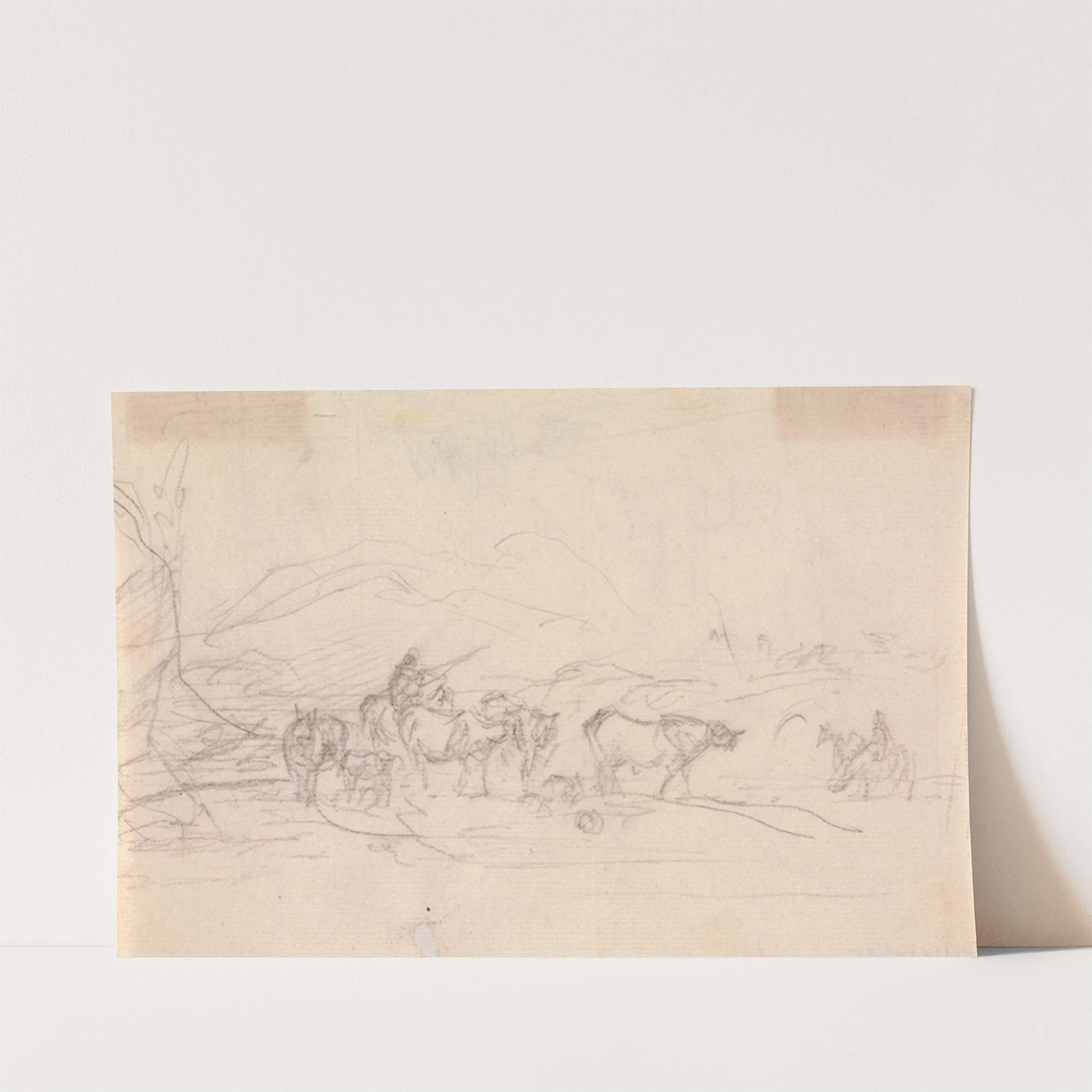 Study of cattle and figures in a landscape by Sawrey Gilpin - Wall Art Print