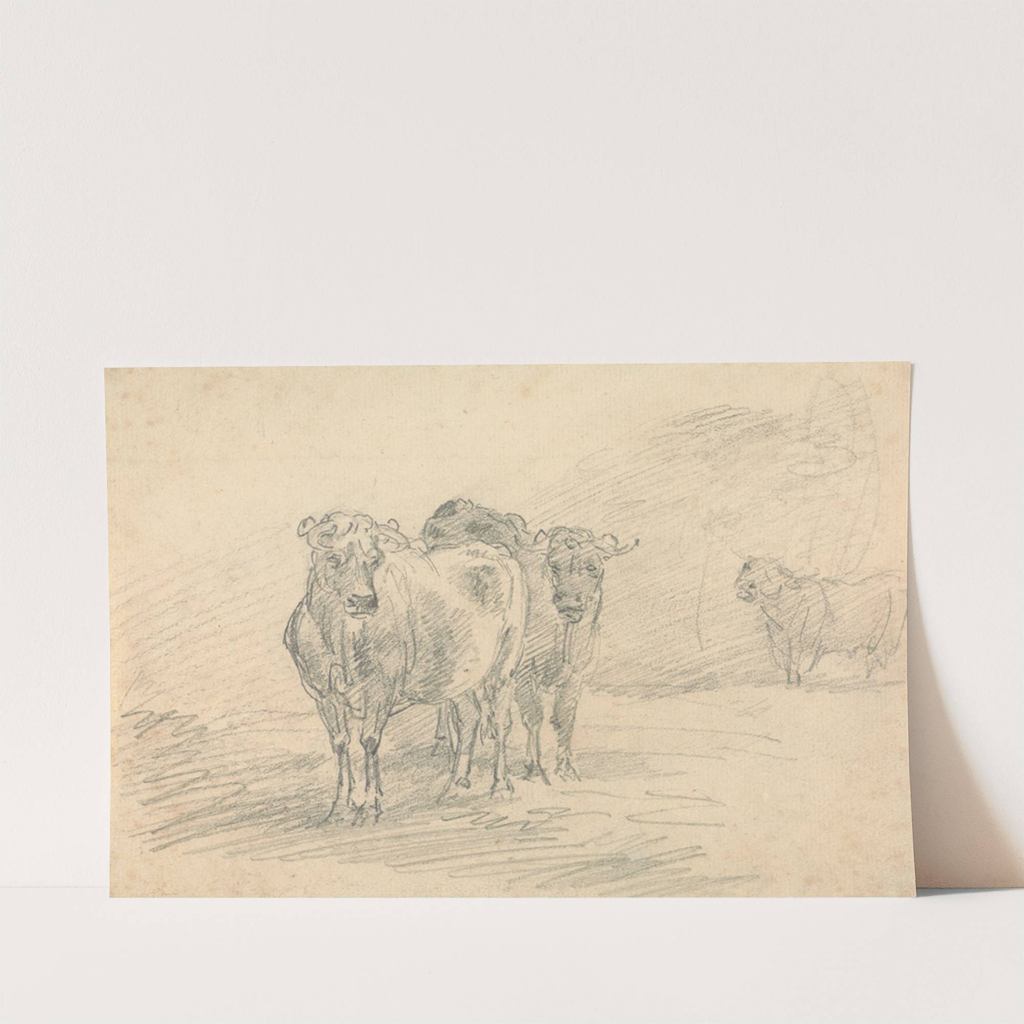 Two Cows on a Hill by Sawrey Gilpin - Wall Art Print