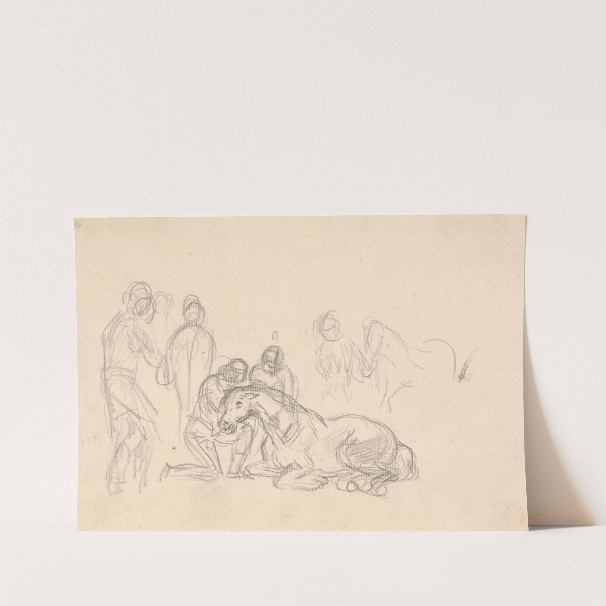 Two figures kneeling beside a horse… by Sawrey Gilpin - Wall Art Print