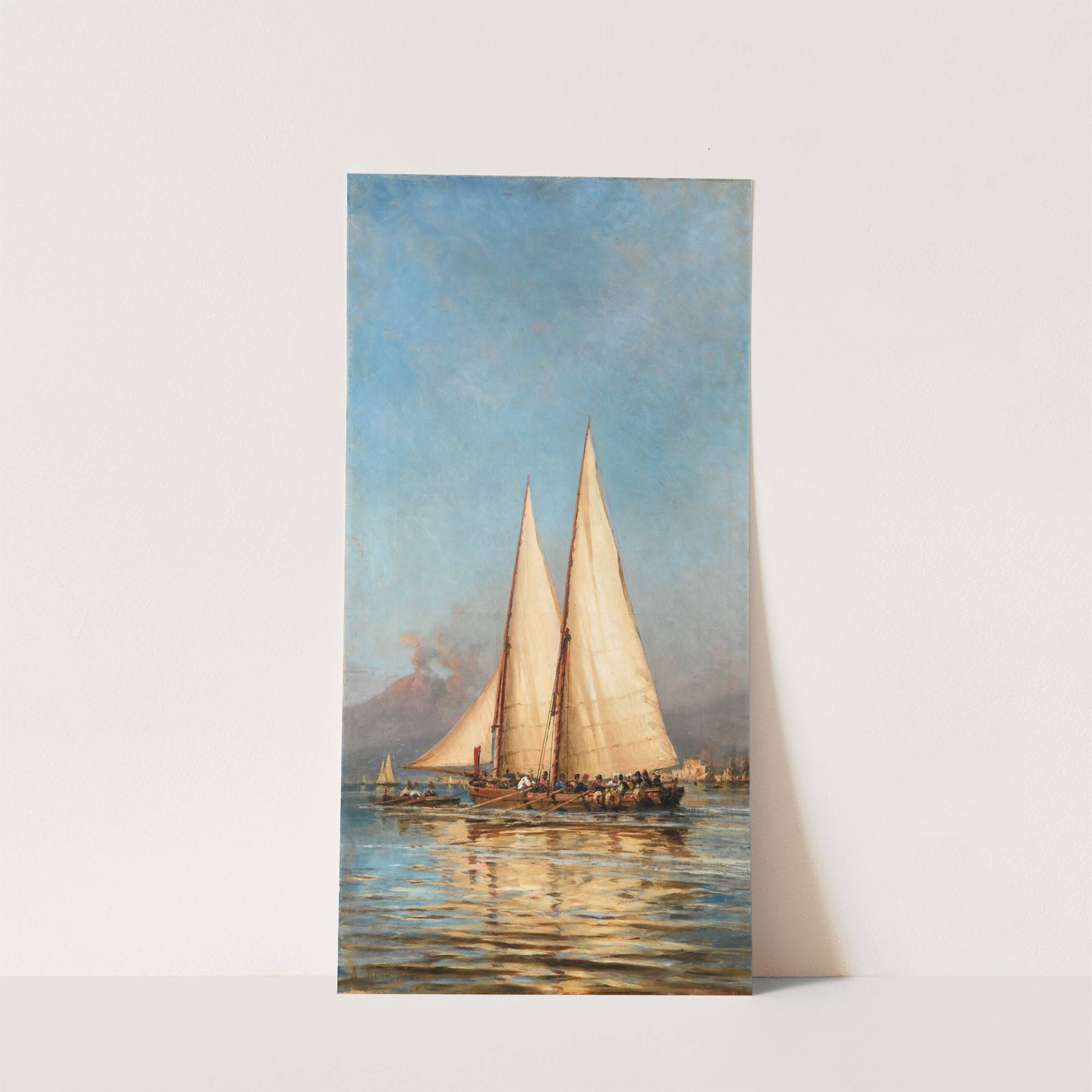Experience the tranquil beauty of maritime elegance with "Holland" by Alexey Petrovich Bogolyubov. This captivating art print depicts two prominent sailboats gliding across serene waters, their white sails catching the sunlight against a backdrop of a calm blue sky. The...