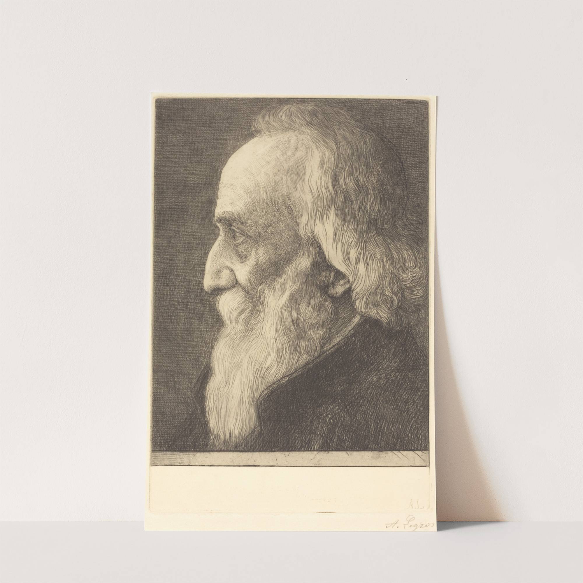 This exquisite art print captures the timeless elegance of "Self-Portrait, 13th Plate" by renowned artist Alphonse Legros. Rendered in meticulous black-and-white ink drawing, this portrait highlights the serene profile of an elderly man with a contemplative expression. His wavy white...