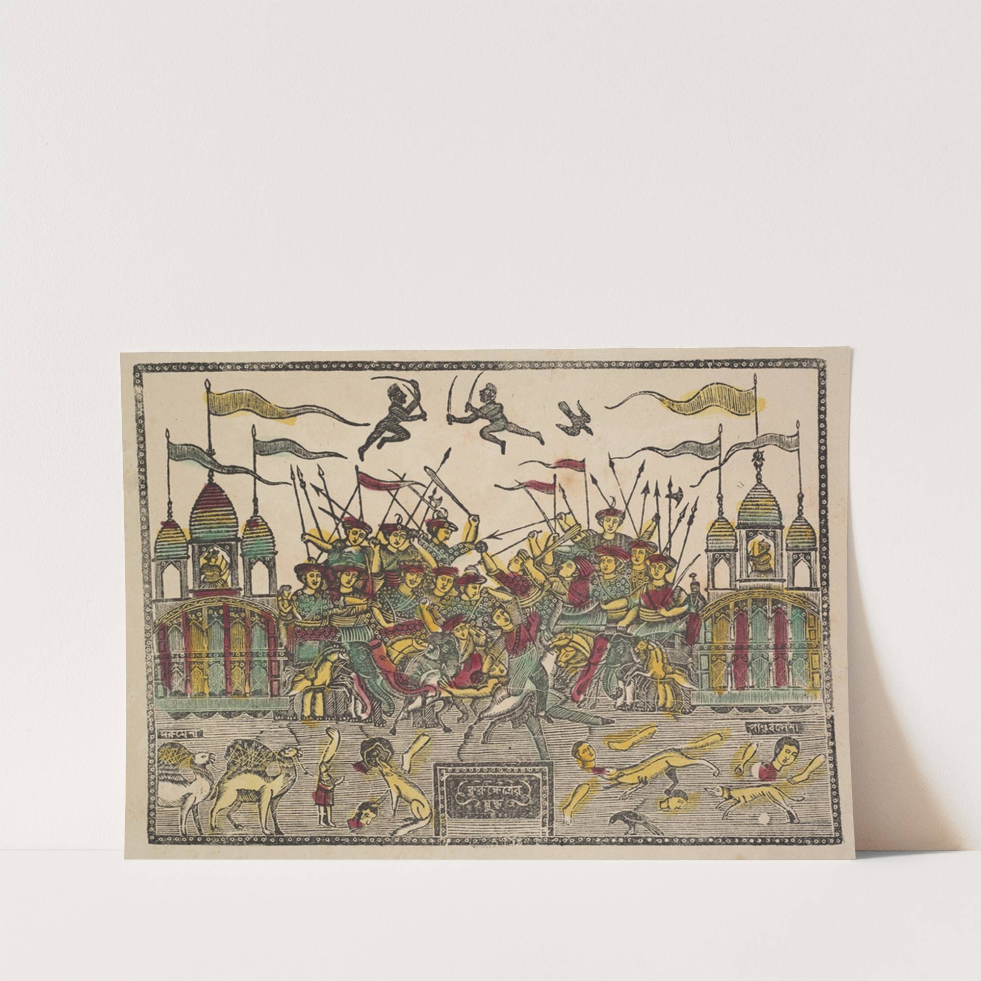 Battle Scene at Kurukshetra from the Mahabharata War (c. 1890) by Shri Gobinda Chandra Roy - Wall Art Print