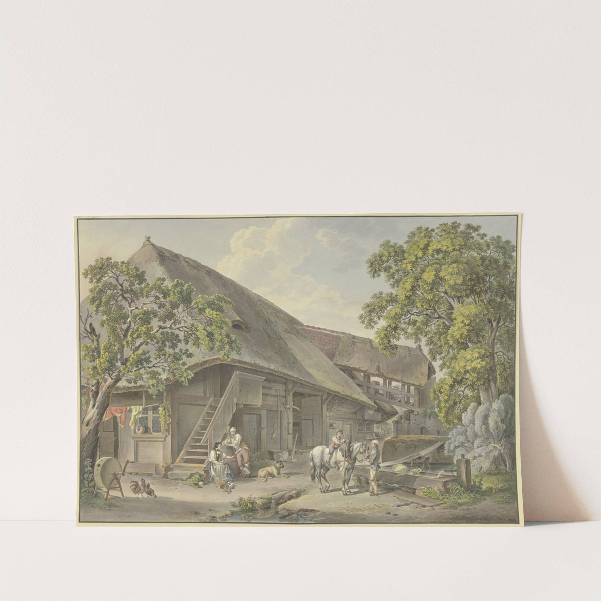 Schweizerhaus, am Brunnen Bauer mit einem Schimmel, auf dem ein Knabe reitet by Sigmund Freudenberger - Wall Art Print
