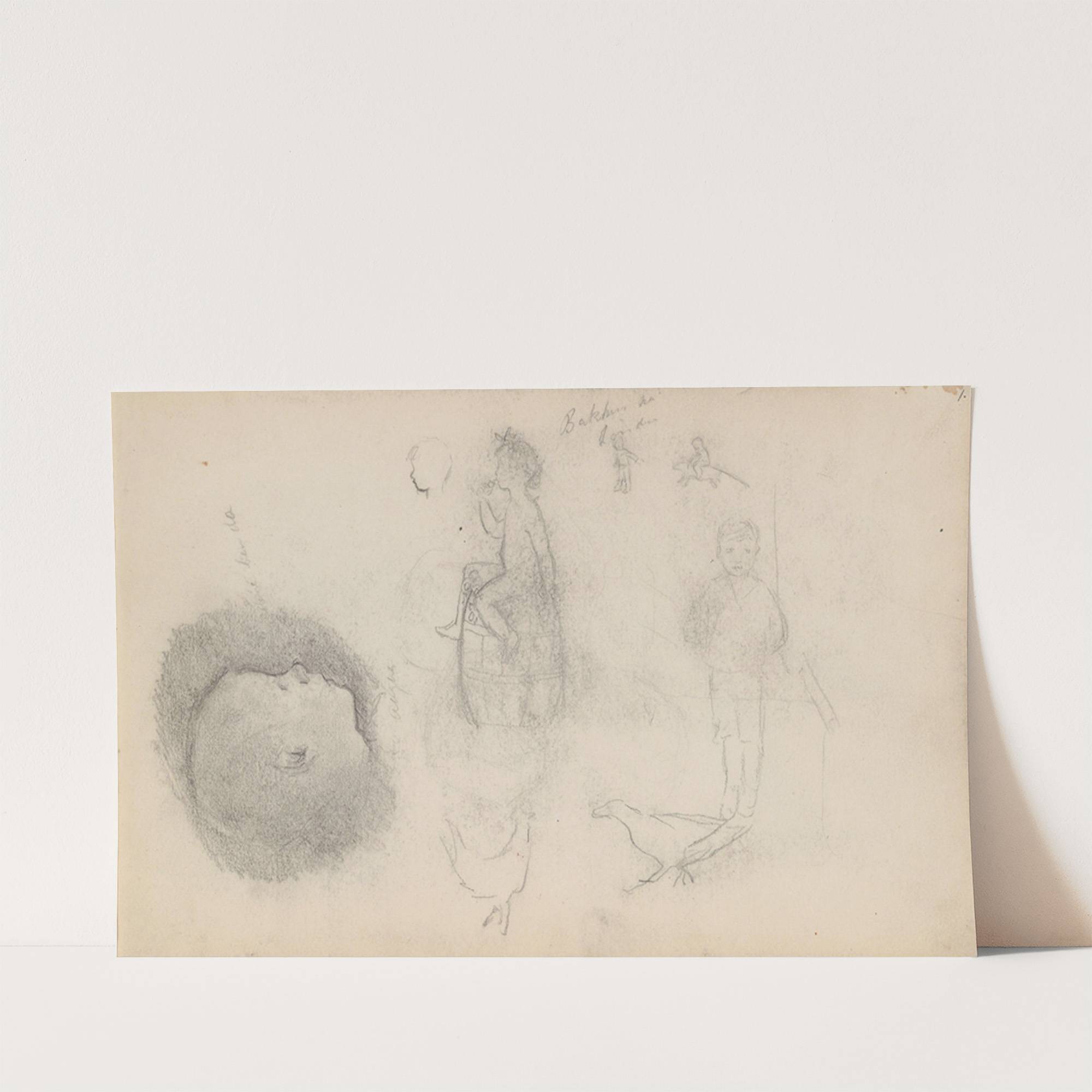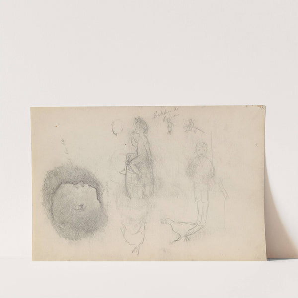 Barneportrett; studier av barn; riss av fugler by Signe Scheel - Wall Art Print