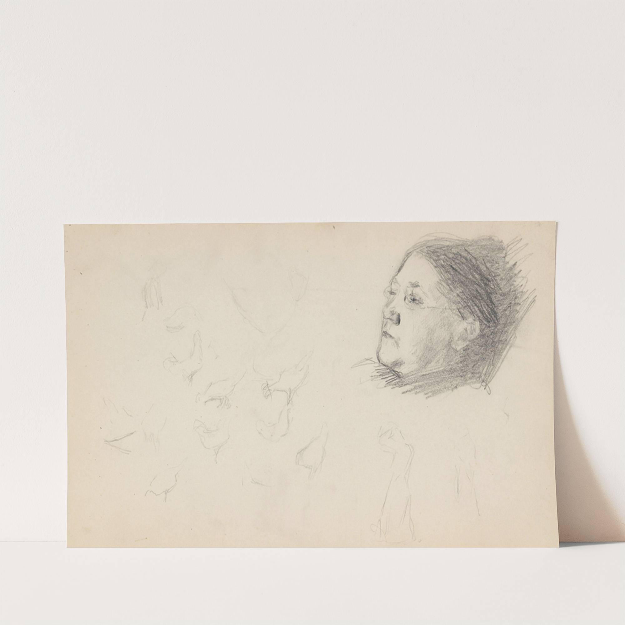Christiane Marie Mathilde Bay; riss av fugler, riss av kvinne by Signe Scheel - Wall Art Print