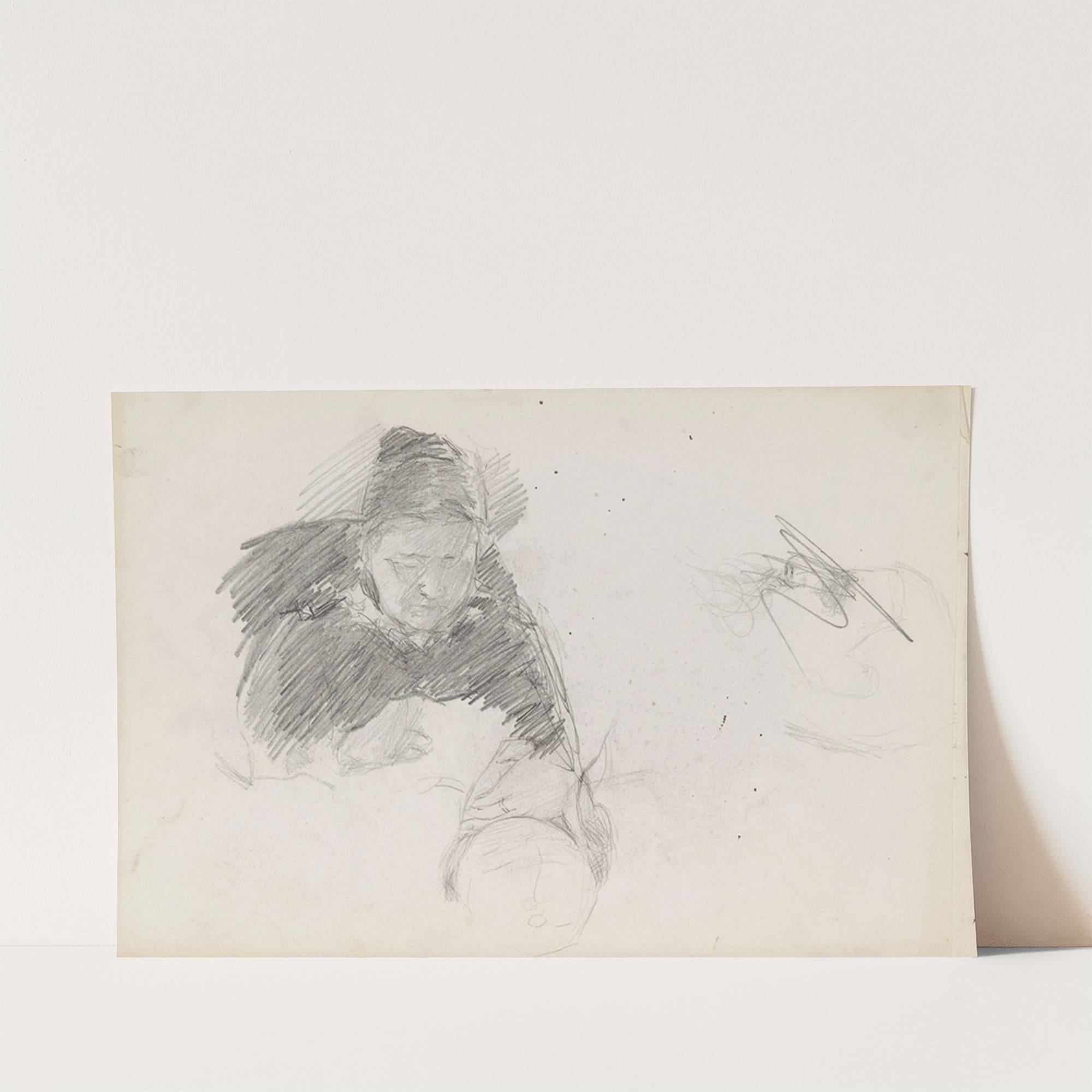 Kvinneportrett; riss av hode by Signe Scheel - Wall Art Print