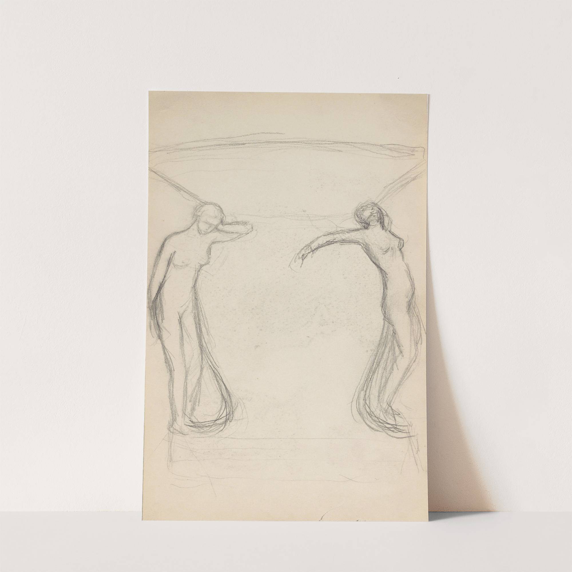 Utkast til vase med kvinnelige figurer by Signe Scheel - Wall Art Print