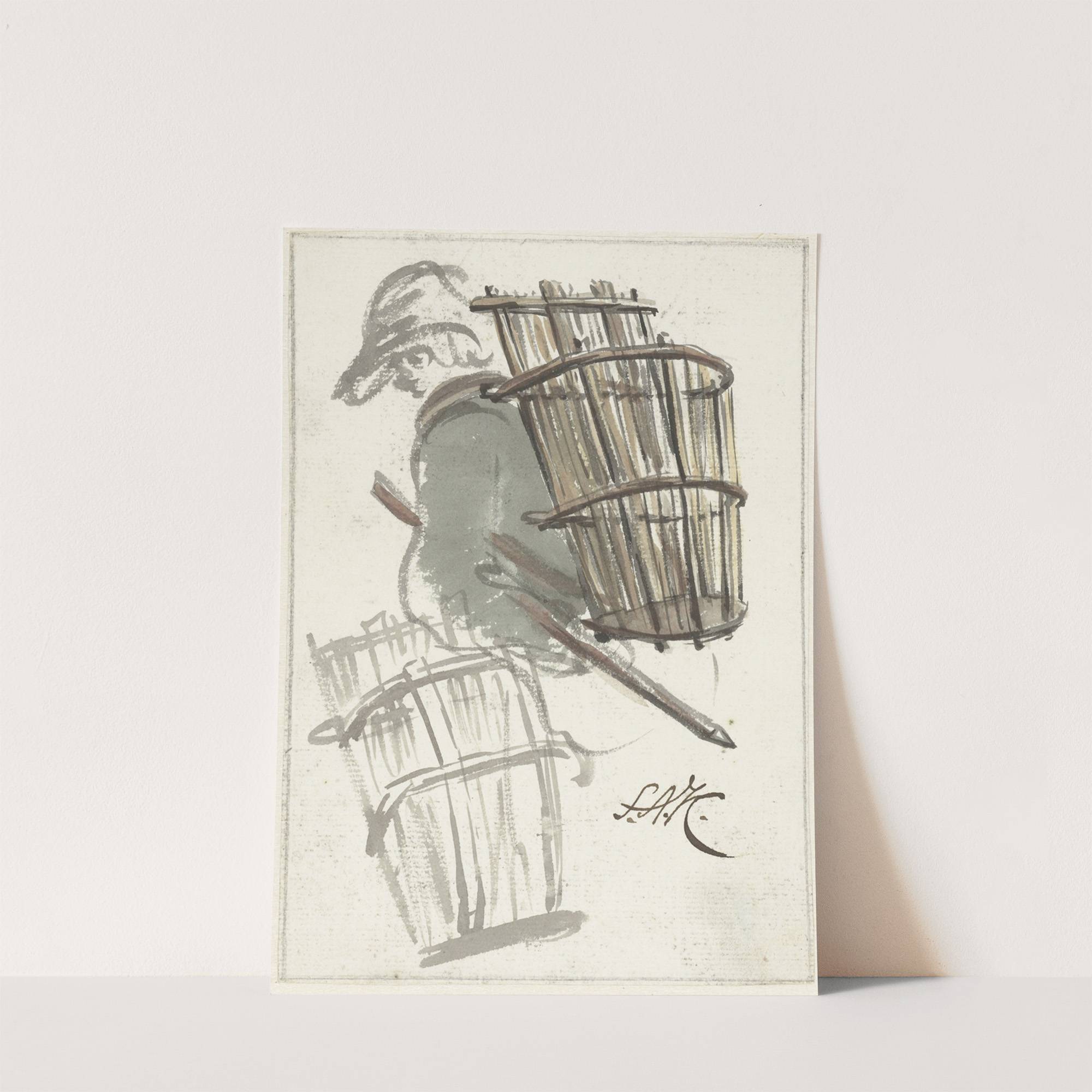 Studies van een man met een mand op de rug by Simon Andreas Krausz  - Wall Art Print