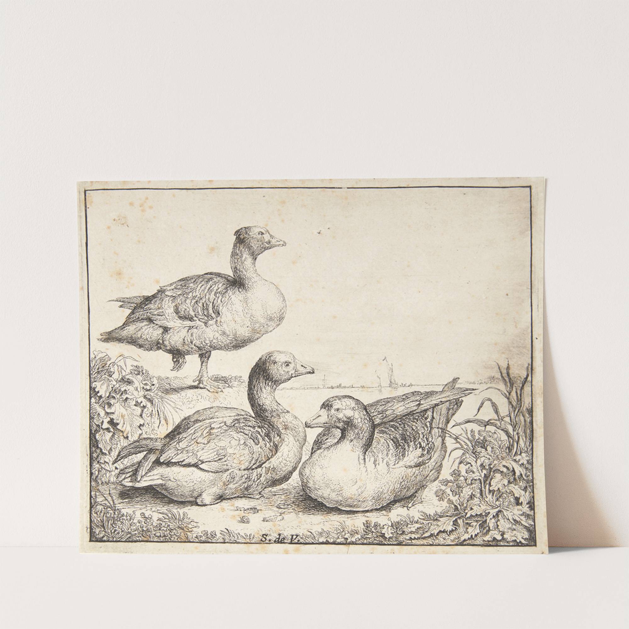 Tre gæs by Simon de Vlieger - Wall Art Print