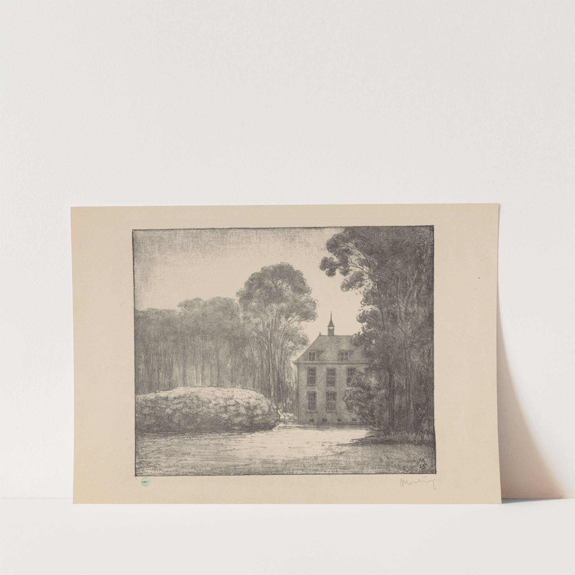 This elegant print showcases "Gezicht op boerderijwoning op landgoed De Raephorst Raephorst" by Simon Moulijn, created in 1929. The artwork is rendered in a monochromatic palette of black and white, capturing the serene beauty of a countryside scene with meticulous...