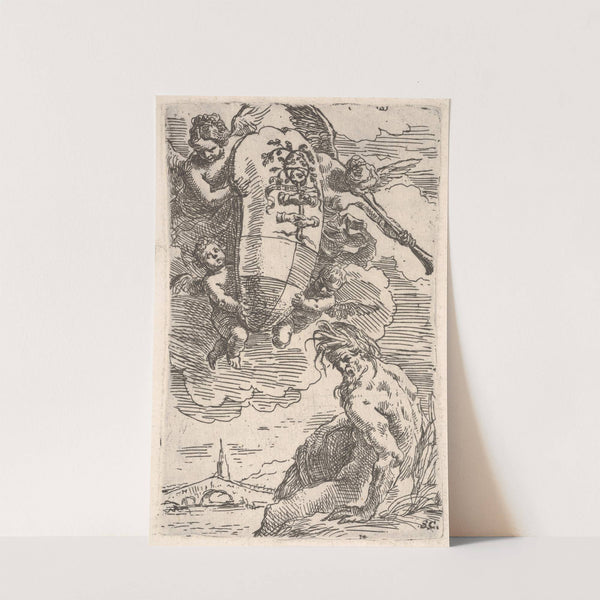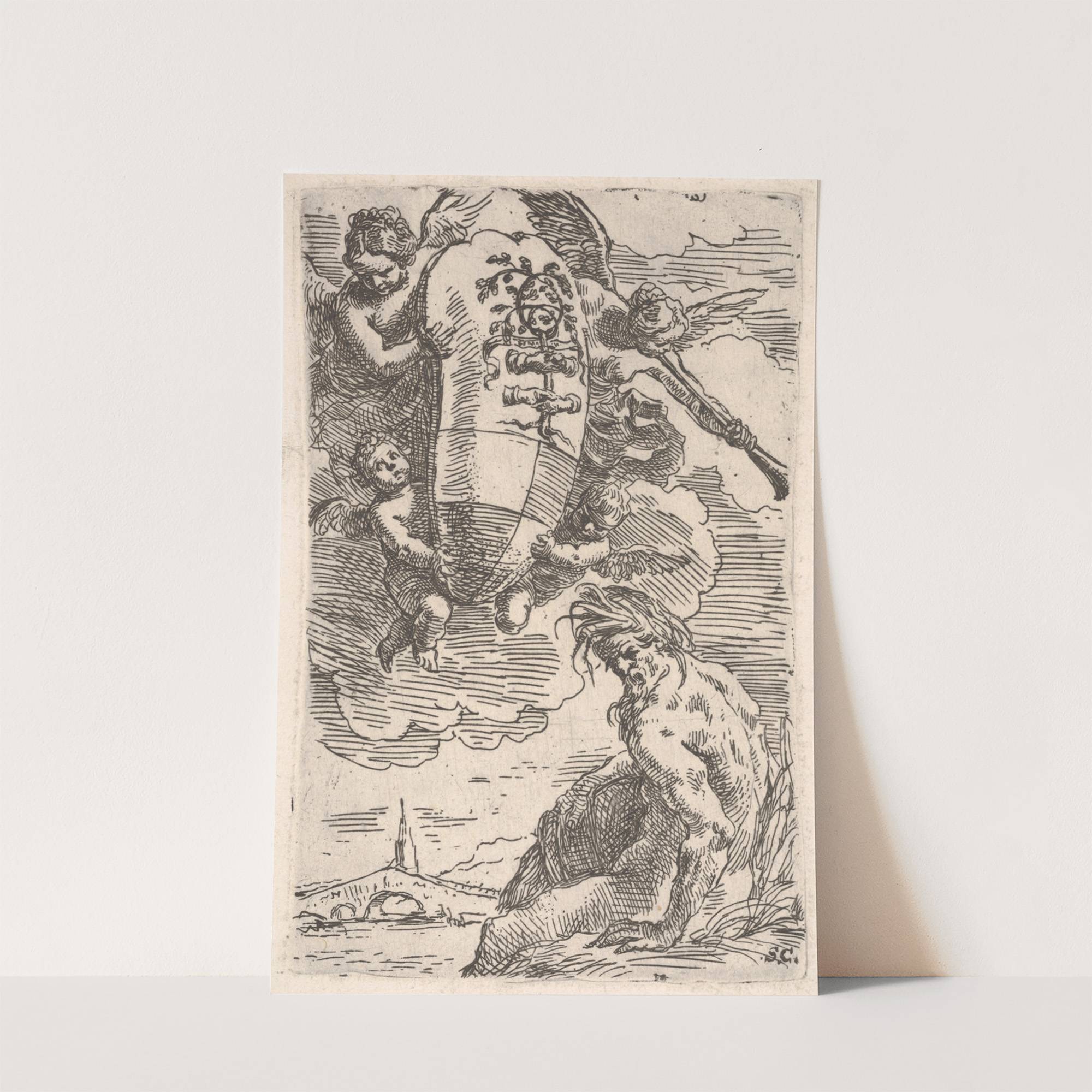 Allegory of the Foglia River and the city of Pesaro’s coat of arms, frontispiece for ‘Il Pesarese’ (1639) by Simone Cantarini - Wall Art Print
