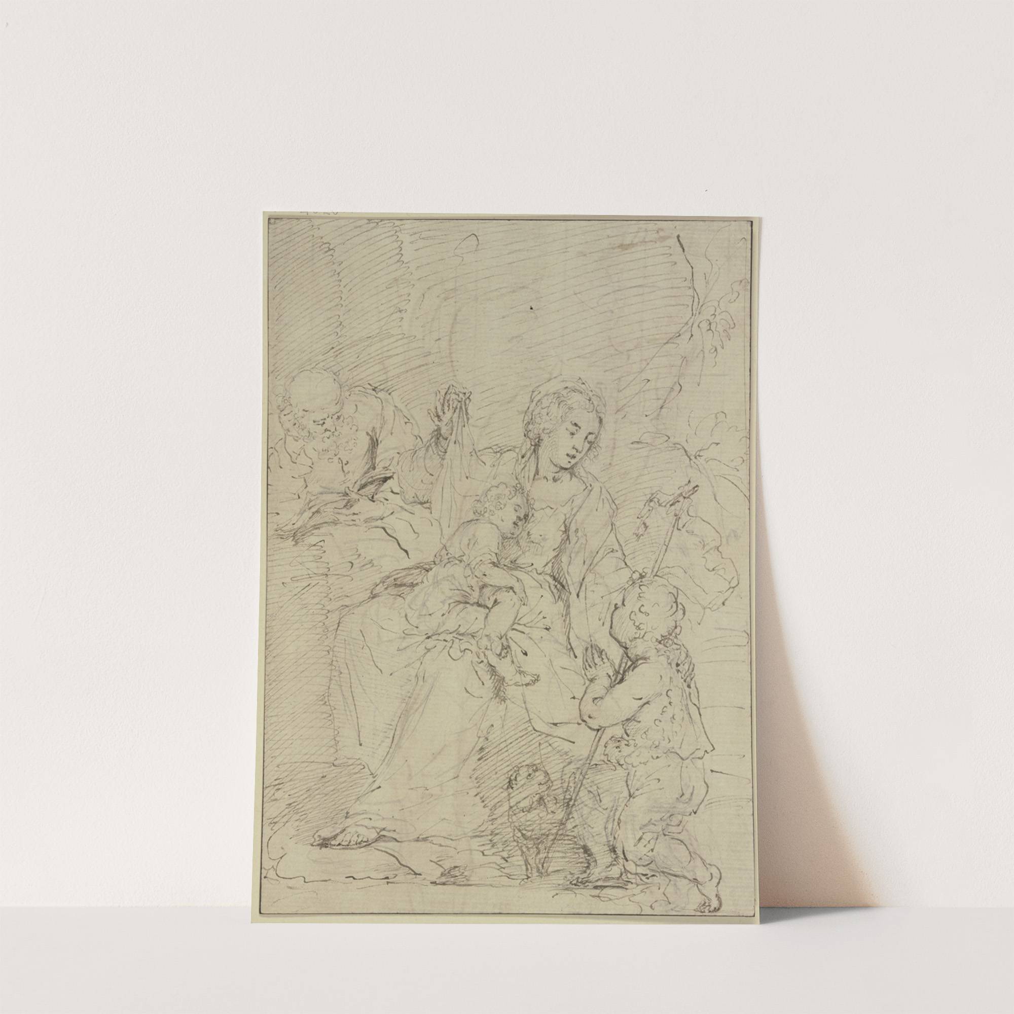 Die Heilige Familie, der Heilige Joseph liest in einem Buch, der Johannesknabe betet das Jesuskind an by Simone Cantarini - Wall Art Print
