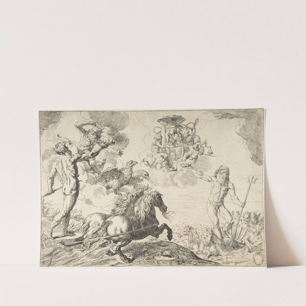 Jupiter, Neptune, and Pluto offering their crowns to the arms of Cardinal Borghese (1642–43) by Simone Cantarini - Wall Art Print