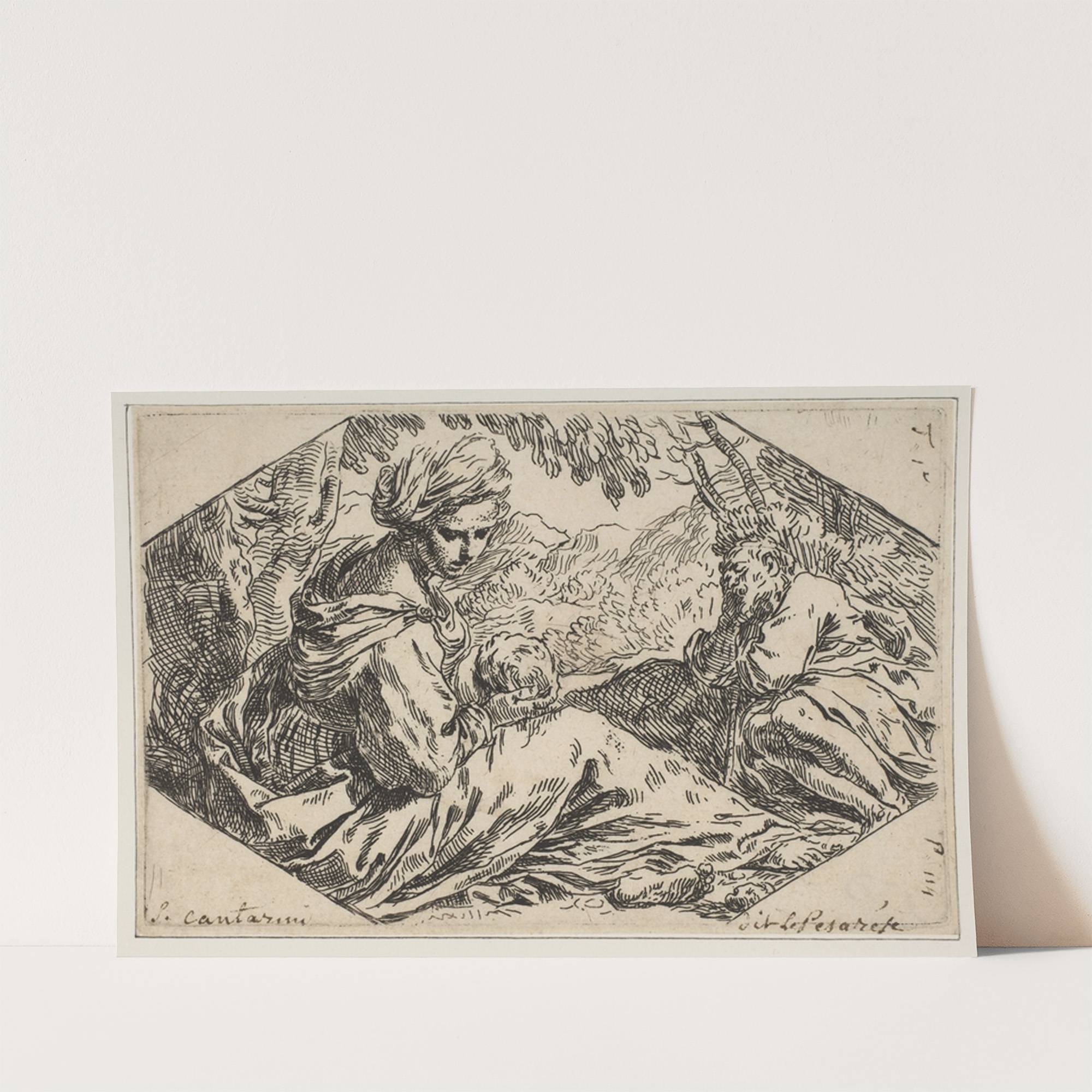 Repose in Egypt, Mary holding and looking at the infant Christ while St. Joseph sleeps (ca. 1637–1639) by Simone Cantarini - Wall Art Print