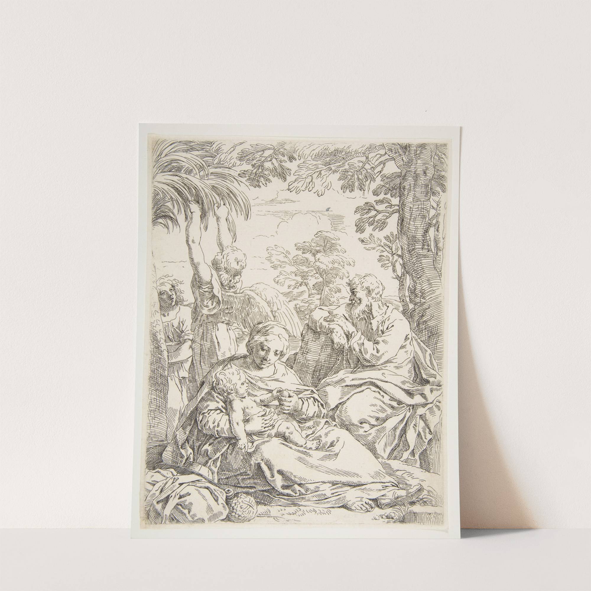 The Holy Family resting on their flight into Egypt (ca. 1637–39) by Simone Cantarini - Wall Art Print