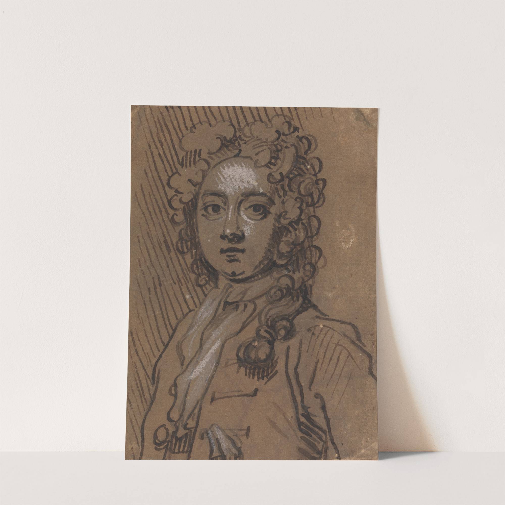 Portrait bust of a man in full-length wig by Sir James Thornhill - Wall Art Print