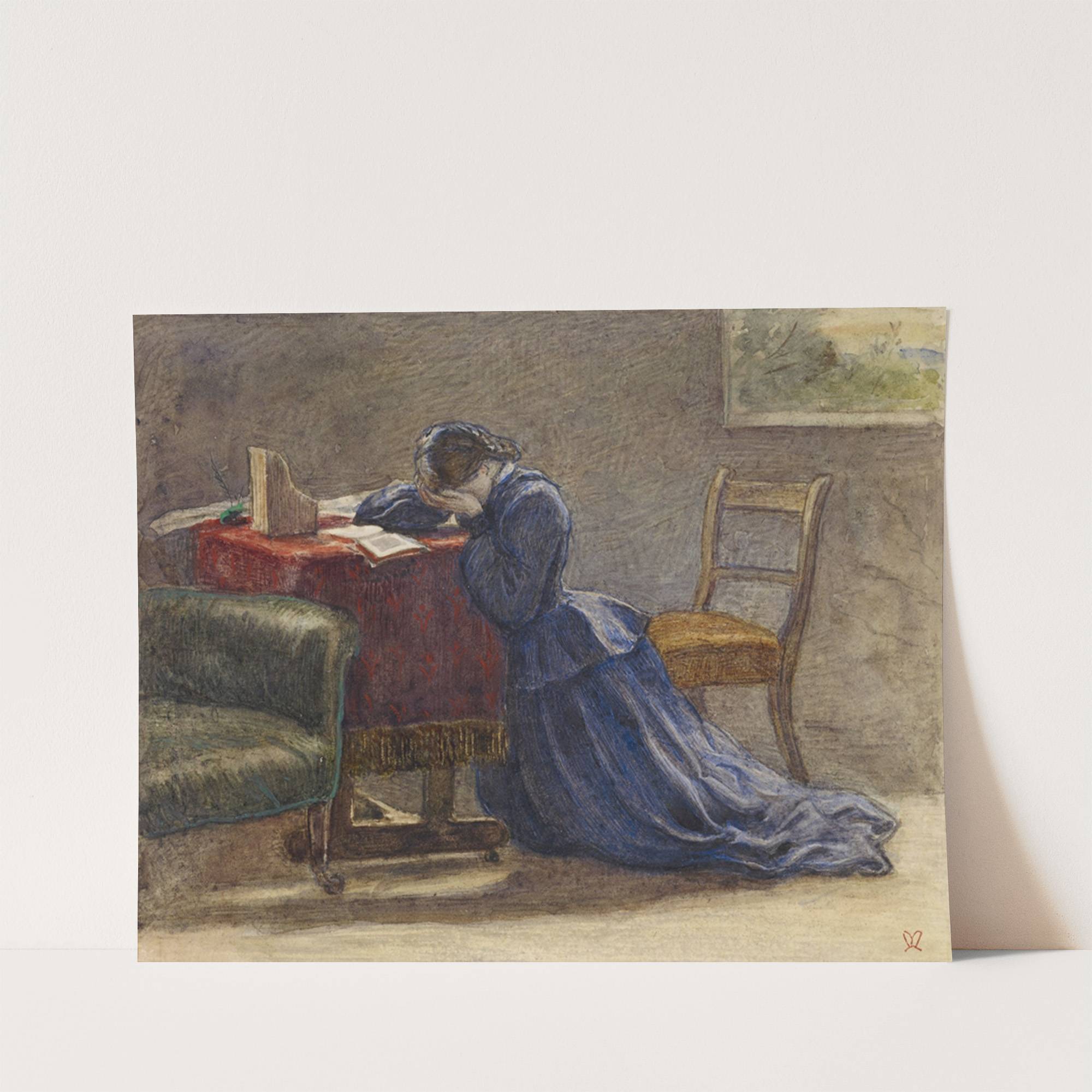 A Wife – Face in Both Hands She Knelt on the Carpet (1863) by Sir John Everett Millais - Wall Art Print