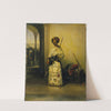 This artwork by Alexandre-Gabriel Decamps depicts "Soldier of the Guard of a Vizier" in an evocative oil painting style. The soldier stands centrally, bathed in a warm, golden light that contrasts with the darker background. He is dressed in ornate,...