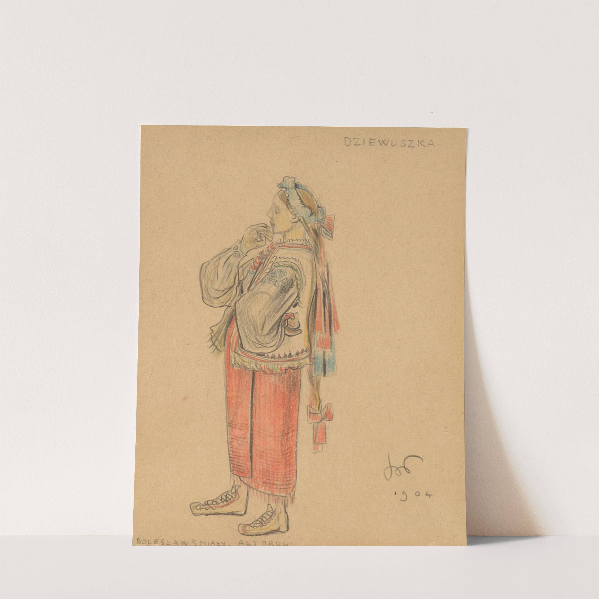 ‘Dziewuszka’. Projekt kostiumu do dramatu ‘BolesÅaw ÅmiaÅy’ (Akt drugi) by StanisÅaw WyspiaÅski  - Wall Art Print