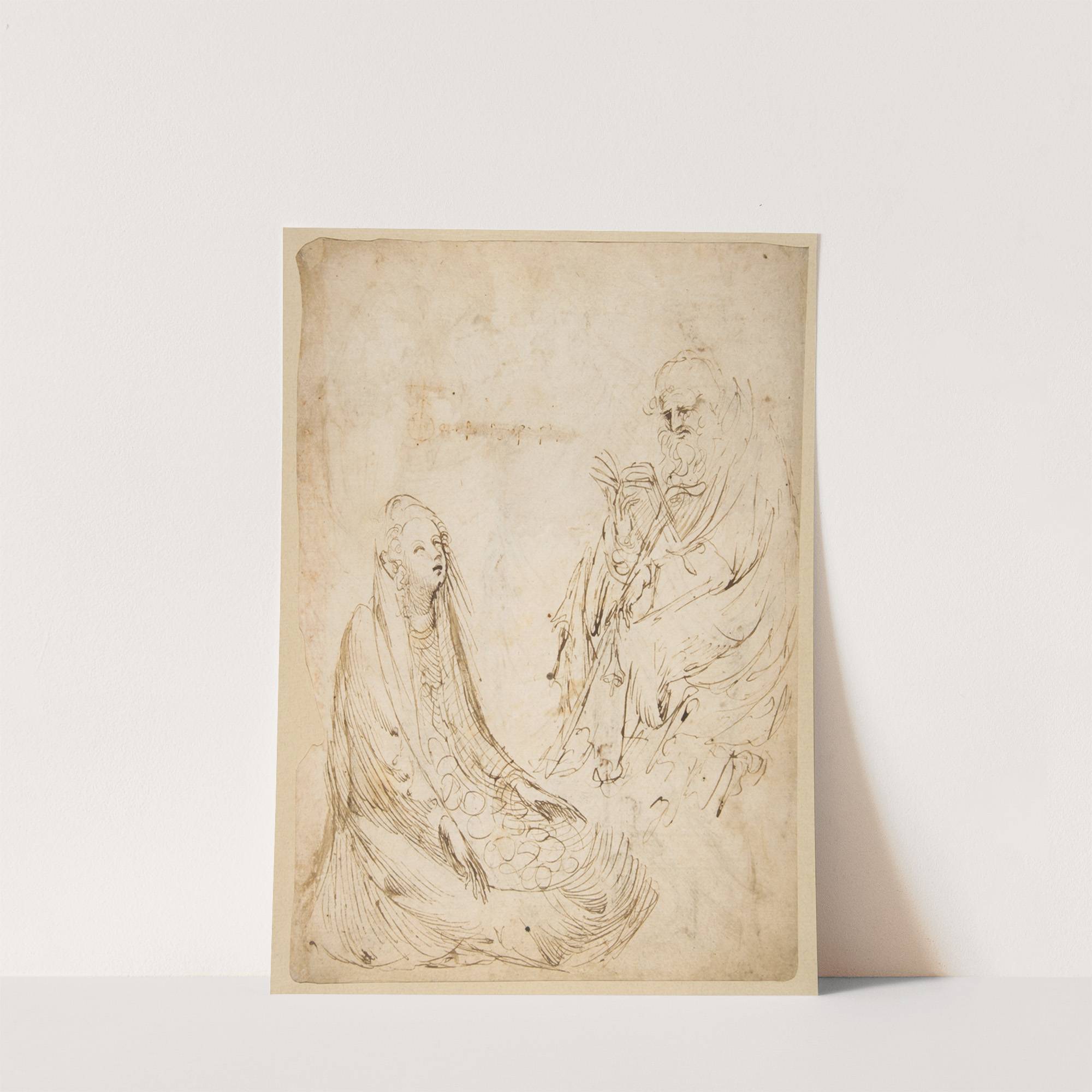 Seated Woman and a Male Hermit in Half-length by Stefano da Verona - Wall Art Print