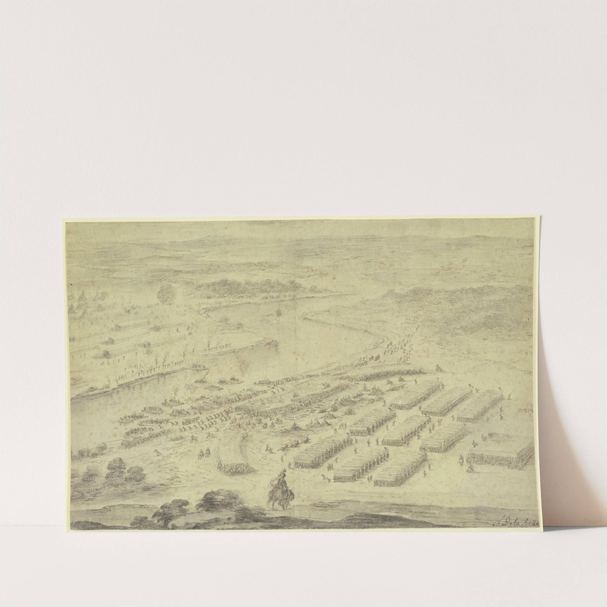 Eine Schlacht an einem Fluss, die eine Armee setzt auf Flößen über denselben by Stefano Della Bella - Wall Art Print