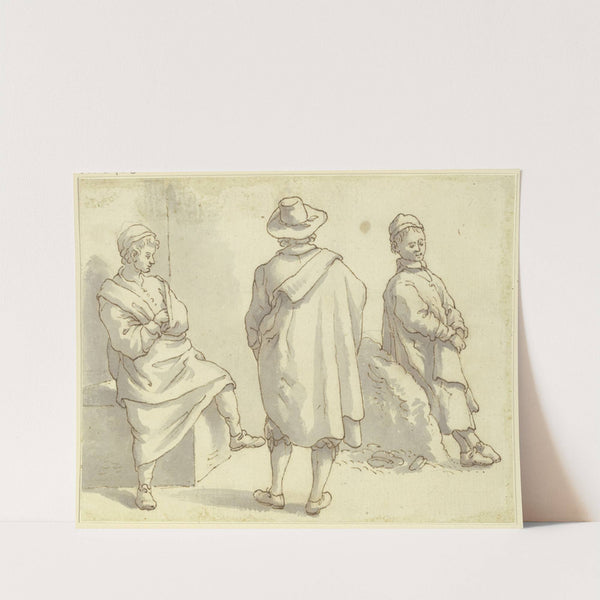 Zwei Matrosen und ein Herr in Hut und Mantel by Stefano Della Bella - Wall Art Print