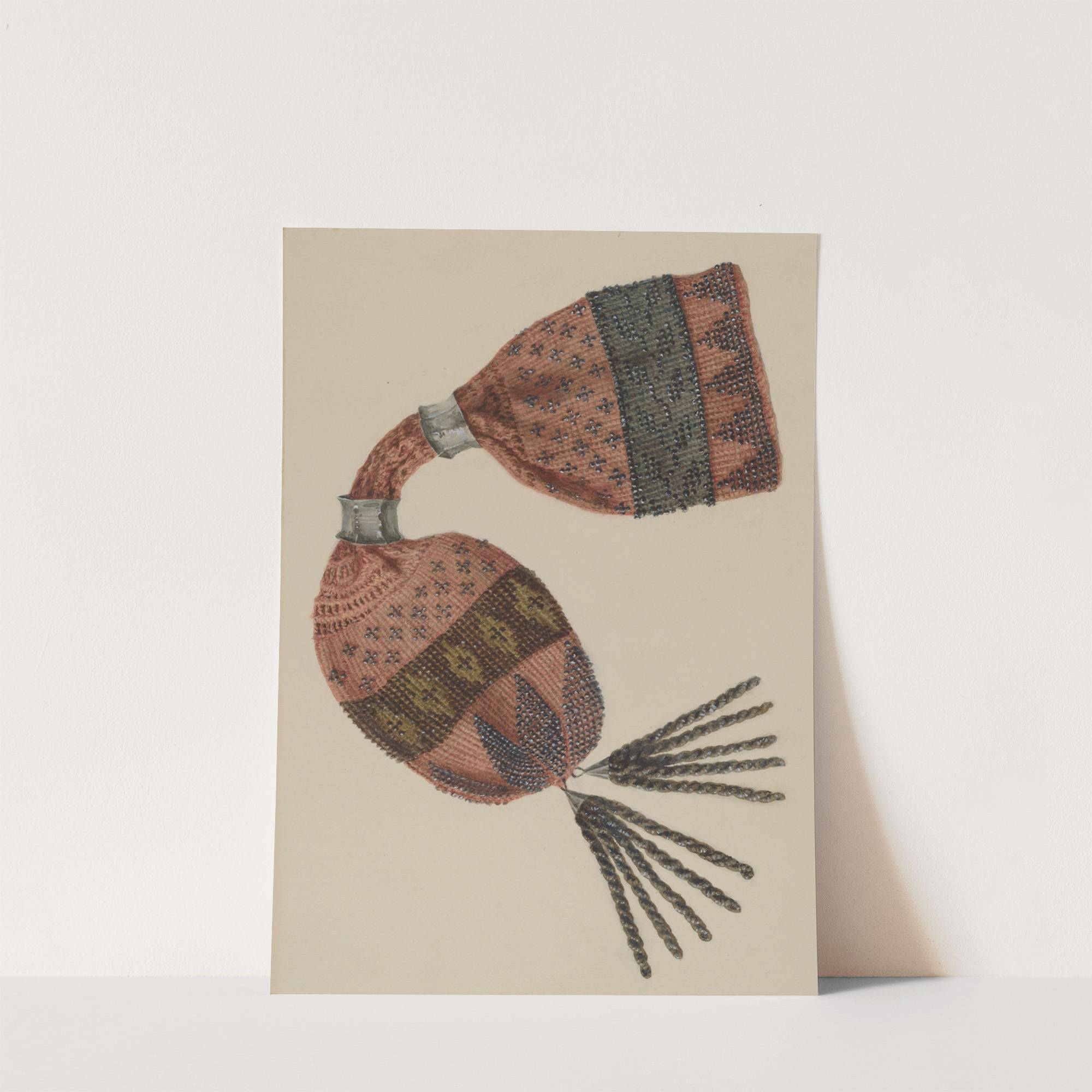 Introducing "Beaded Purse" by artist Stella Mosher – a captivating piece that combines traditional craftsmanship with modern elegance. This art print features a meticulously detailed beaded purse, showcasing an exquisite blend of colors and textures. The purse is predominantly a...