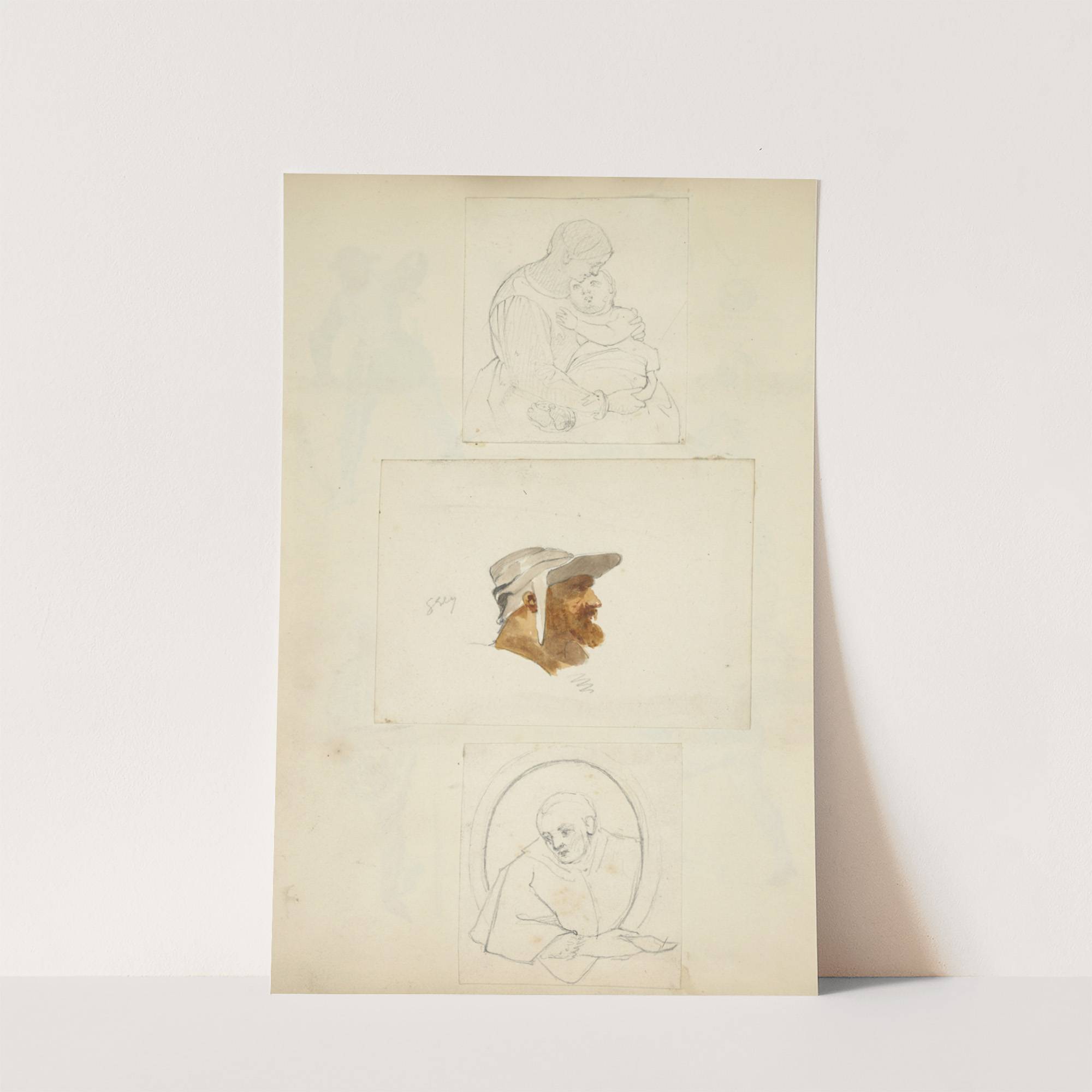 Mother and child; Head of a man wearing a cap; A clergyman by Stewart Watson - Wall Art Print