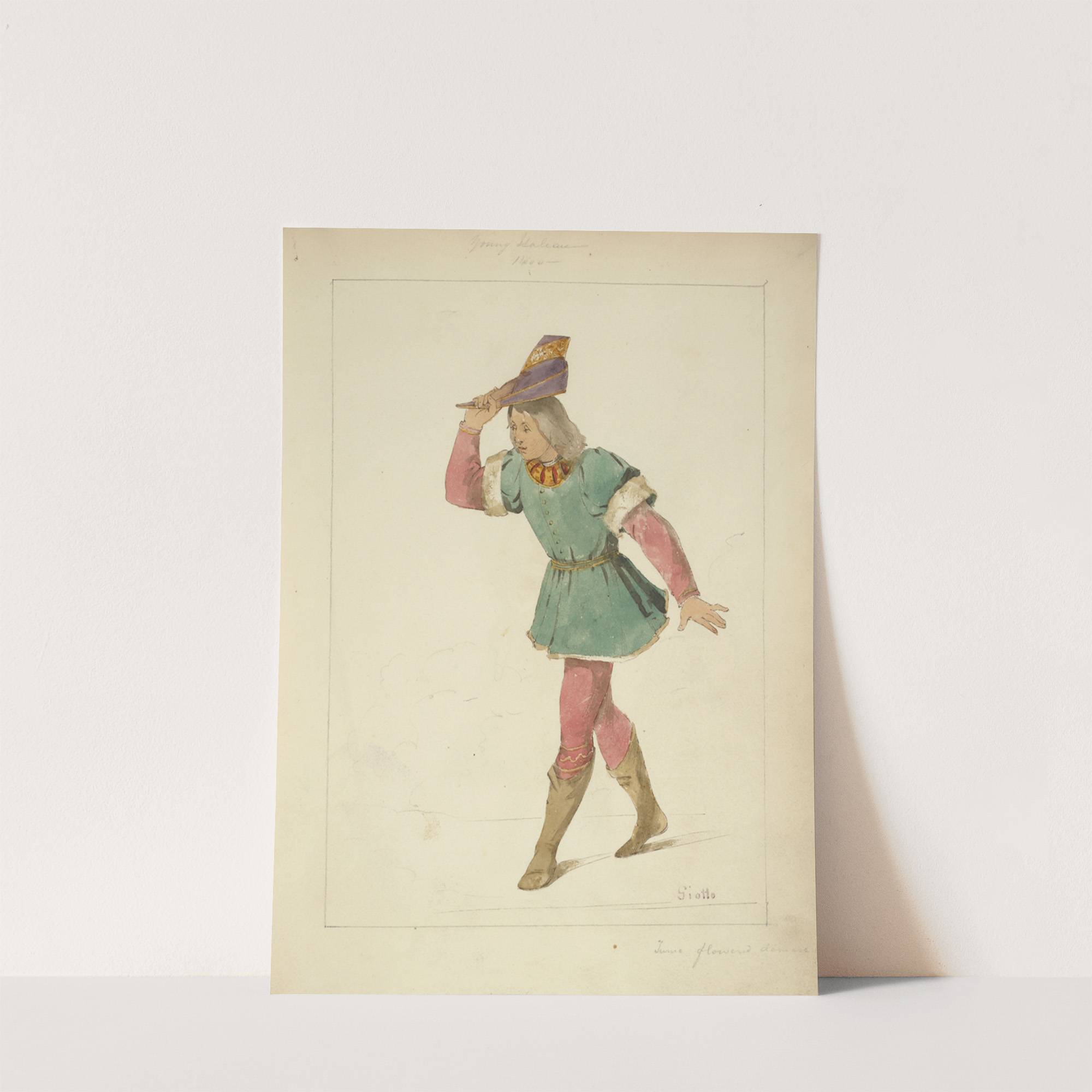 Young Italian, 1400; Tunic flowered damask by Stewart Watson - Wall Art Print