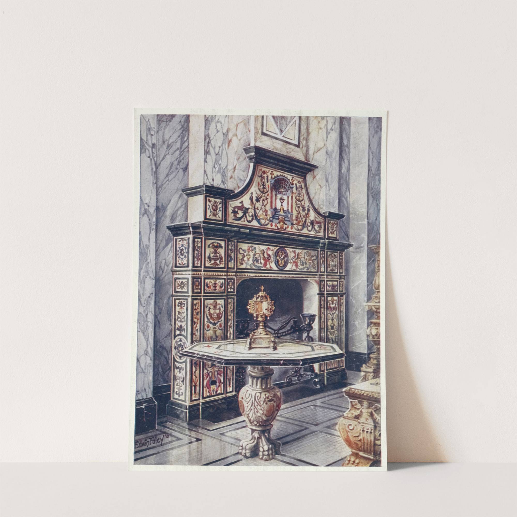 Chimneypiece in coloured mosaic. Florentine. Victoria and Albert Museum, South Kensington. Table in coloured mosaic by Edwin Foley - Wall Art Print