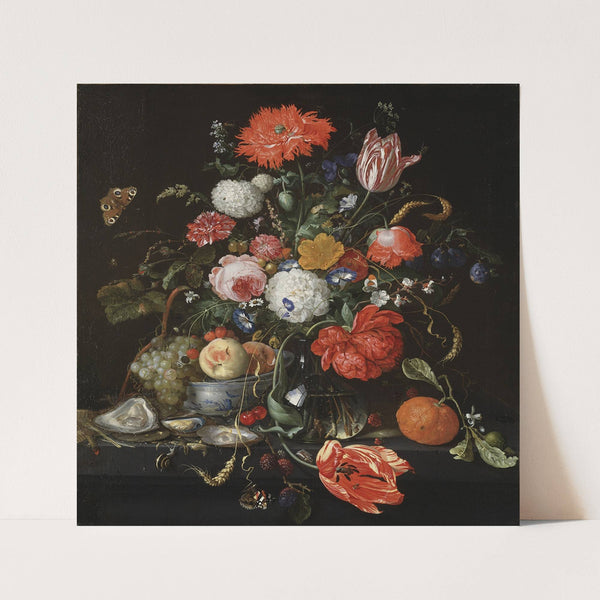 Flower Still Life with a Bowl of Fruit and Oysters by Jan Davidsz de Heem - Wall Art Print