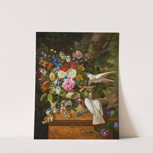 Flowers in a Vase with Two Doves by François Lepage - Wall Art Print