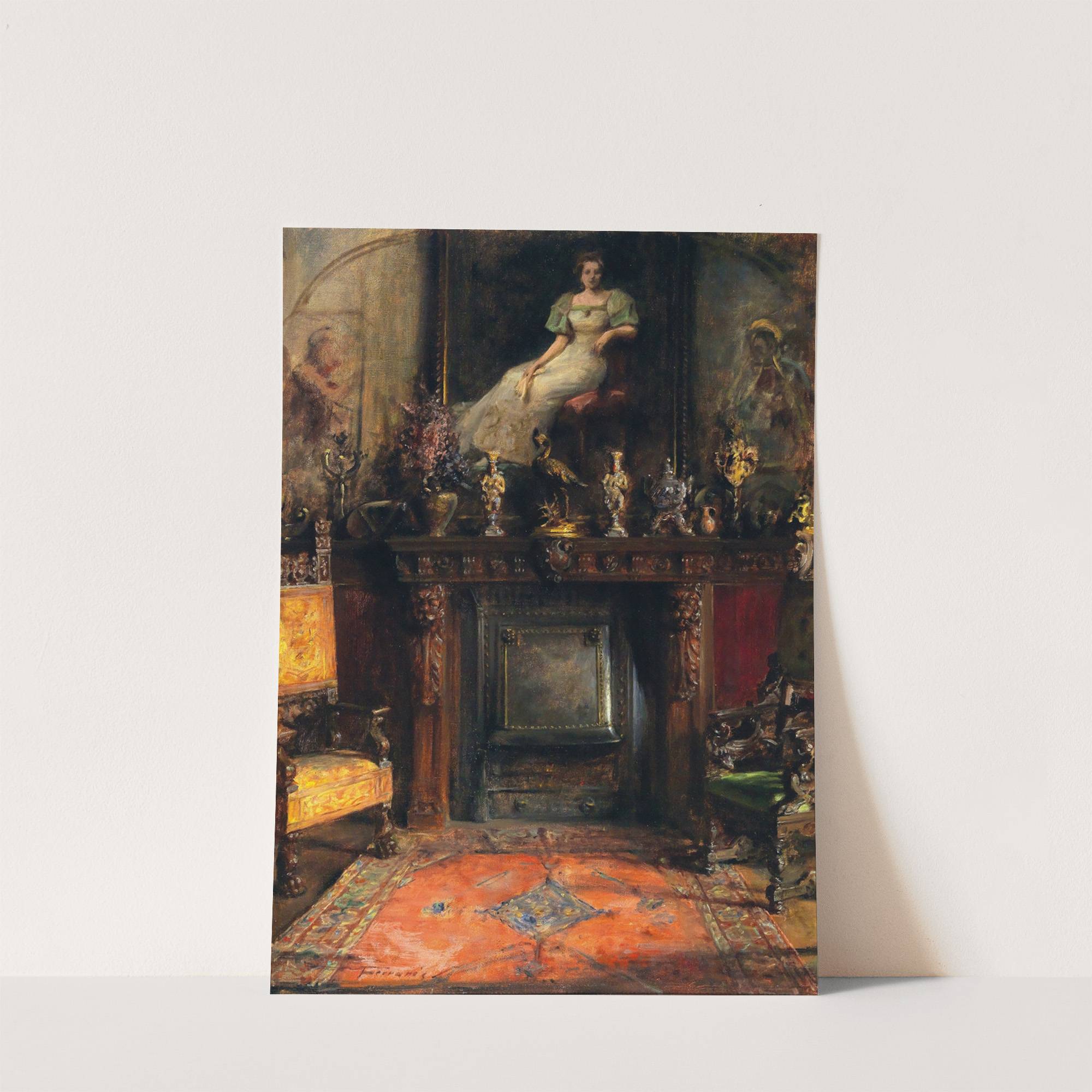 Interior With View Of A Fireplace And A Painting by Arthur Von Ferraris - Wall Art Print
