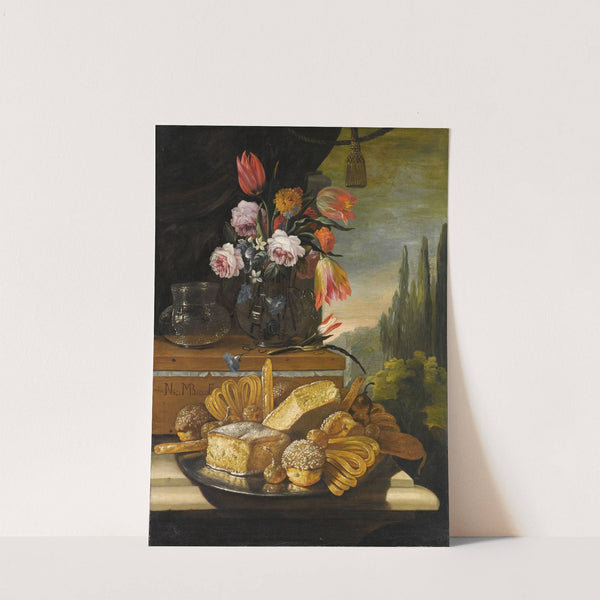 Natura Morta Di Dolci E Biscotti In Un Paesaggio by Nicola Maria Recco - Wall Art Print