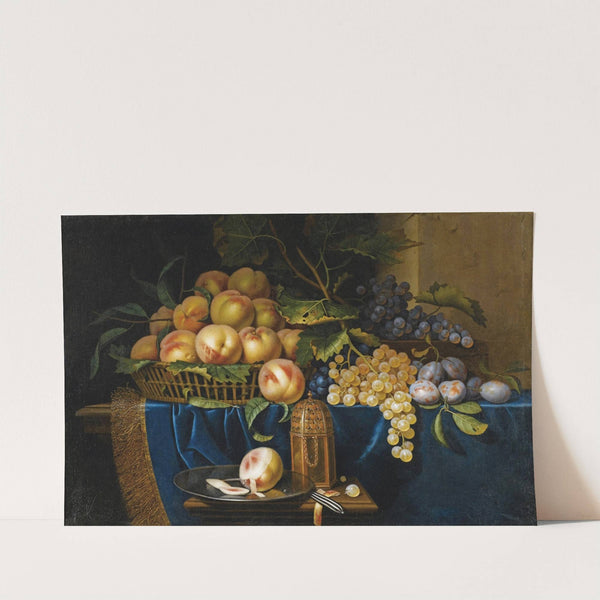 Nature morte aux pêches, raisins, prunes et saupoudreuse en vermeil by Paul Liégeois - Wall Art Print